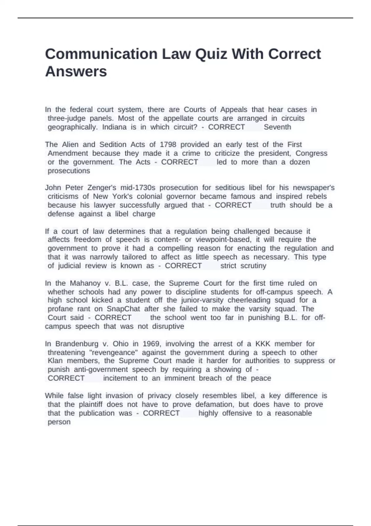 Communication Law Quiz With Correct