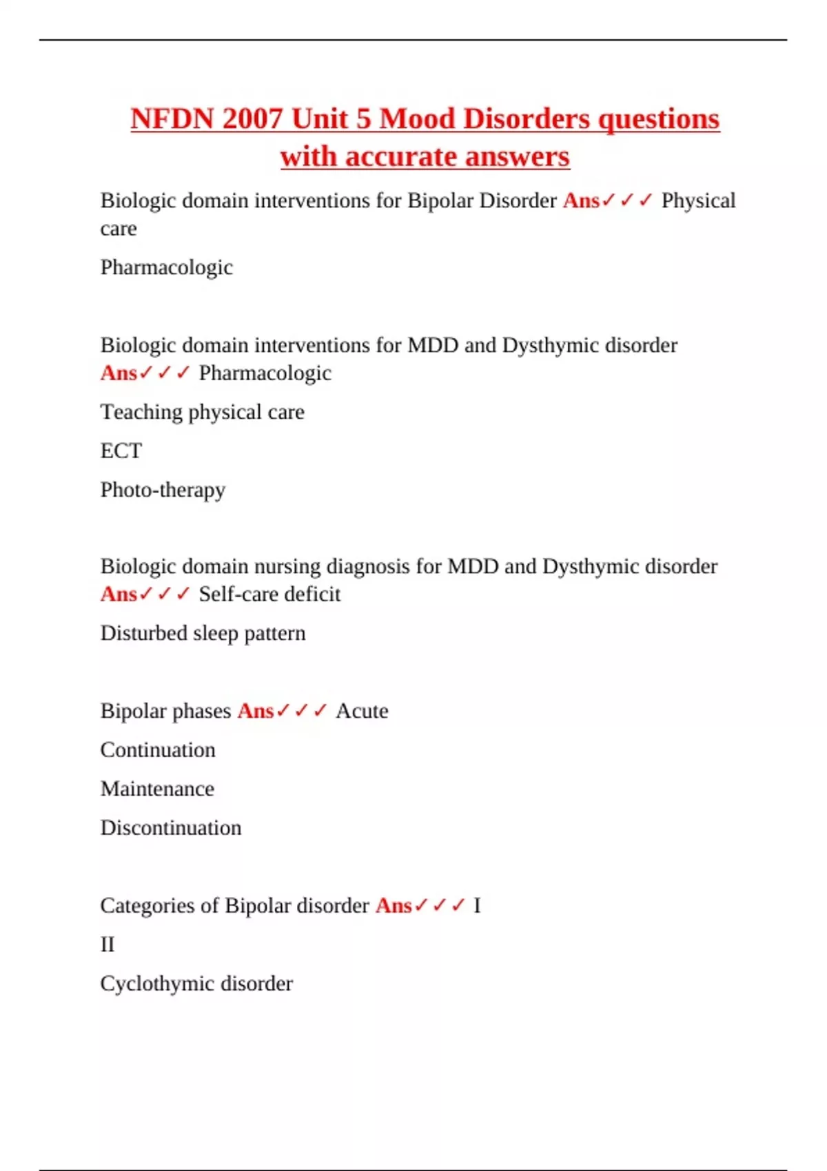 , Categories of Unipolar disorder Ans✓✓✓ Major depression