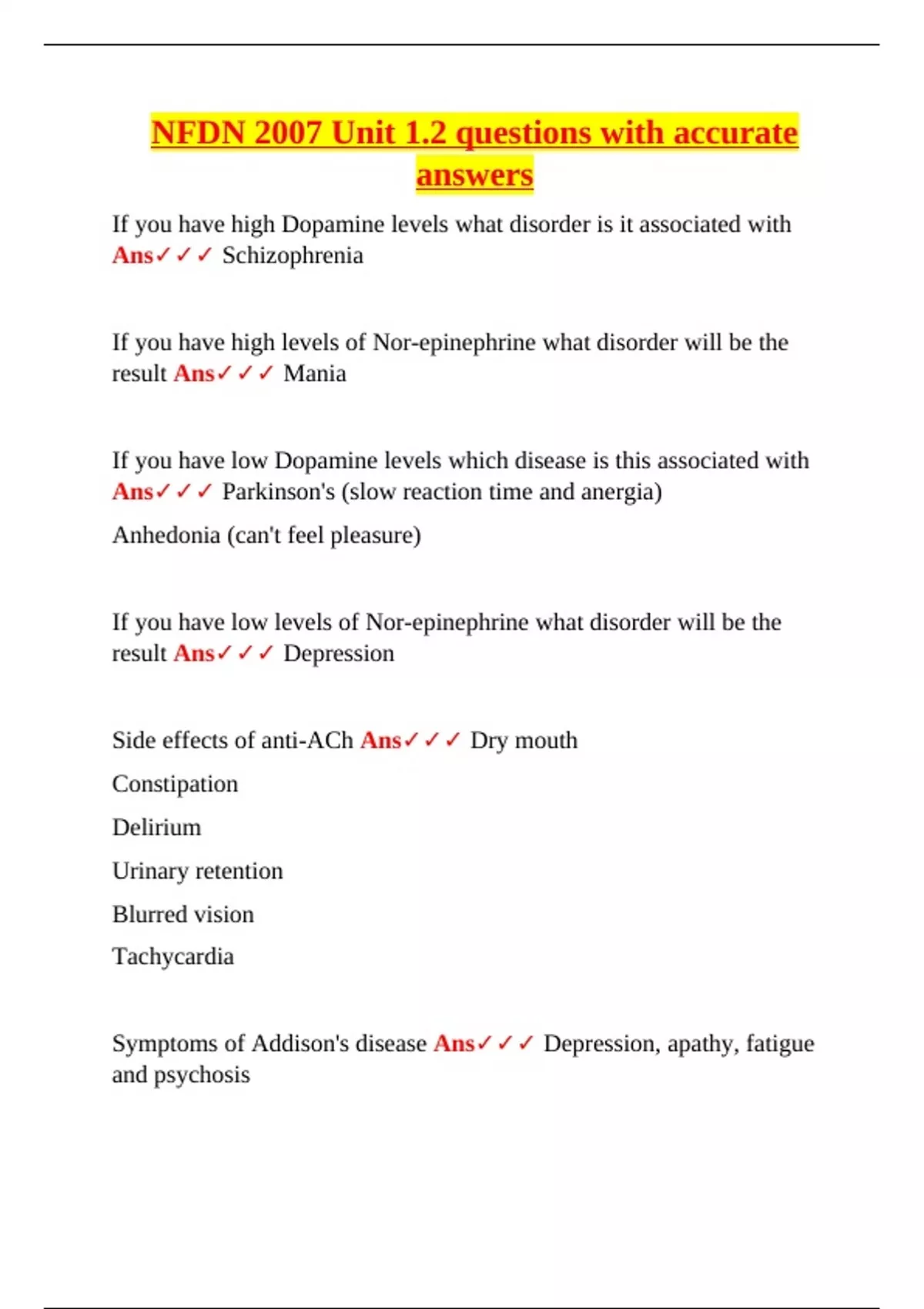 Ans✓✓✓ Schizophrenia