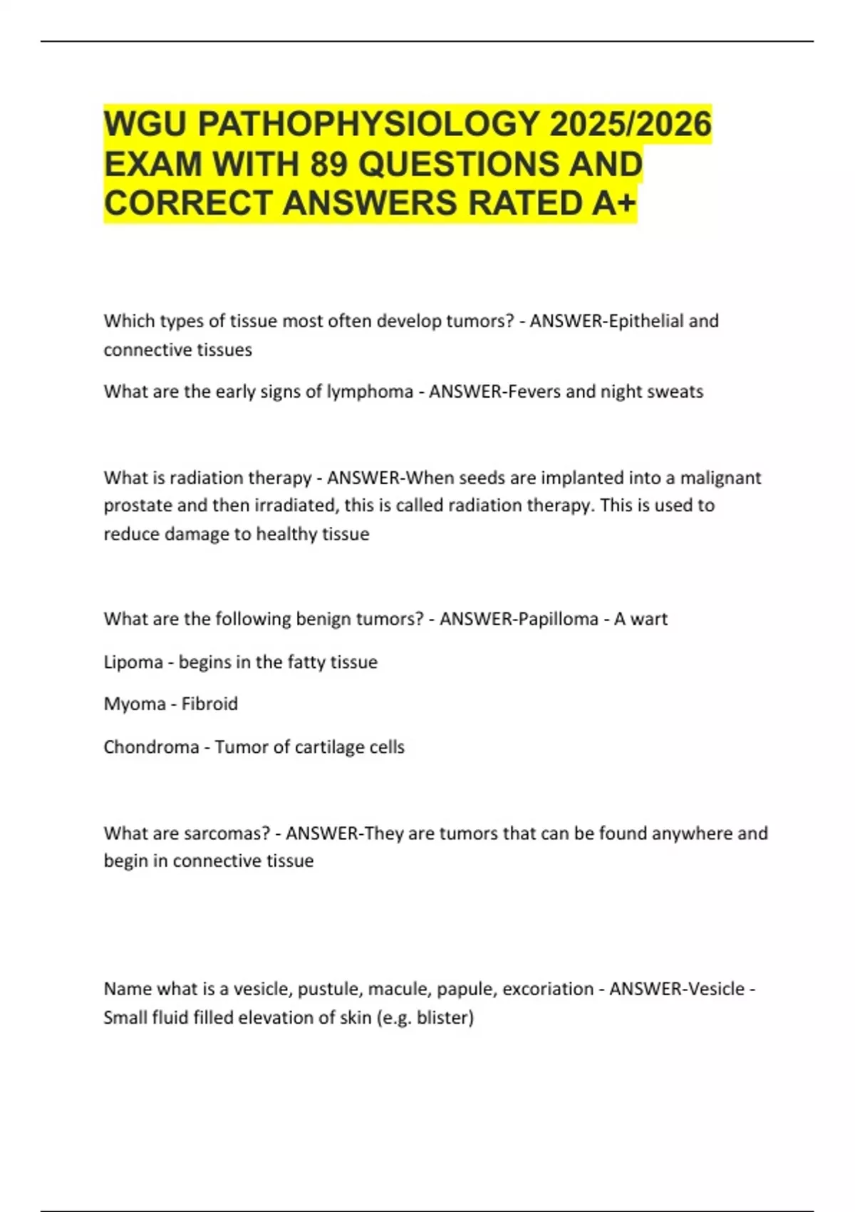 WGU PATHOPHYSIOLOGY 2025/2026 EXAM WITH 89 QUESTIONS AND CORRECT ANSWERS RATED A+WGU PATHOPHYSIOLOGY 2025/2026 EXAM WITH 89 QUESTIONS AND CORRECT ANSWERS RATED A+WGU PATHOPHYSIOLOGY 2025/2026 EXAM WITH 89 QUESTIONS AND CORRECT ANSWERS RATED A+