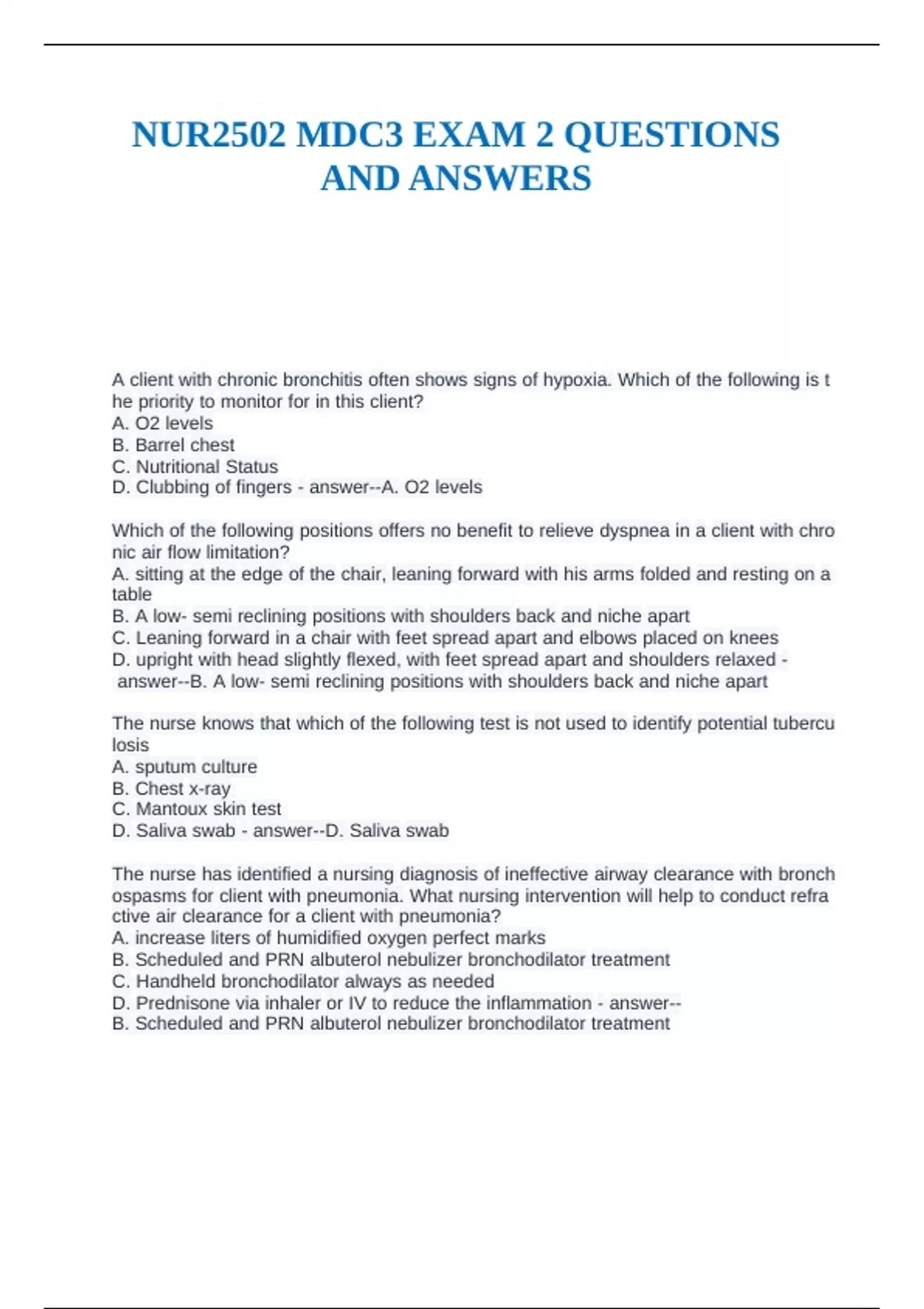 NUR2502 MDC3 EXAM 2 QUESTIONS AND ANSWERS.