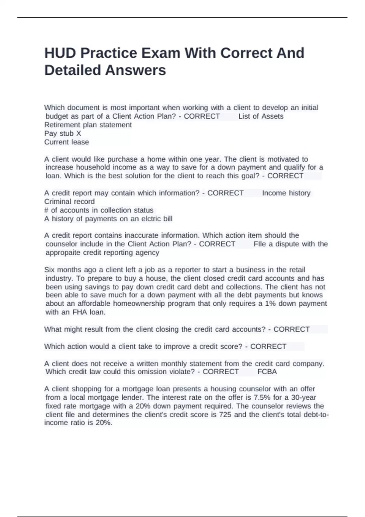HUD Practice Exam With Correct And