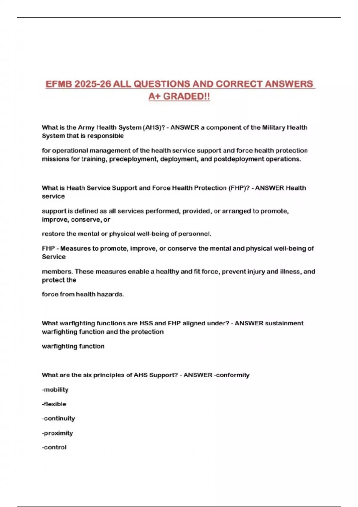 EFMB 2025-26 ALL QUESTIONS AND CORRECT ANSWERS A+ GRADED!!...