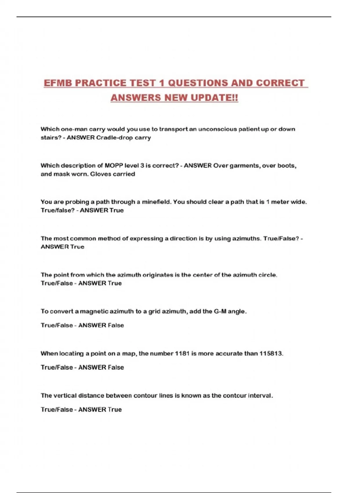 EFMB PRACTICE TEST 1 QUESTIONS AND CORRECT ANSWERS NEW UPDATE!!