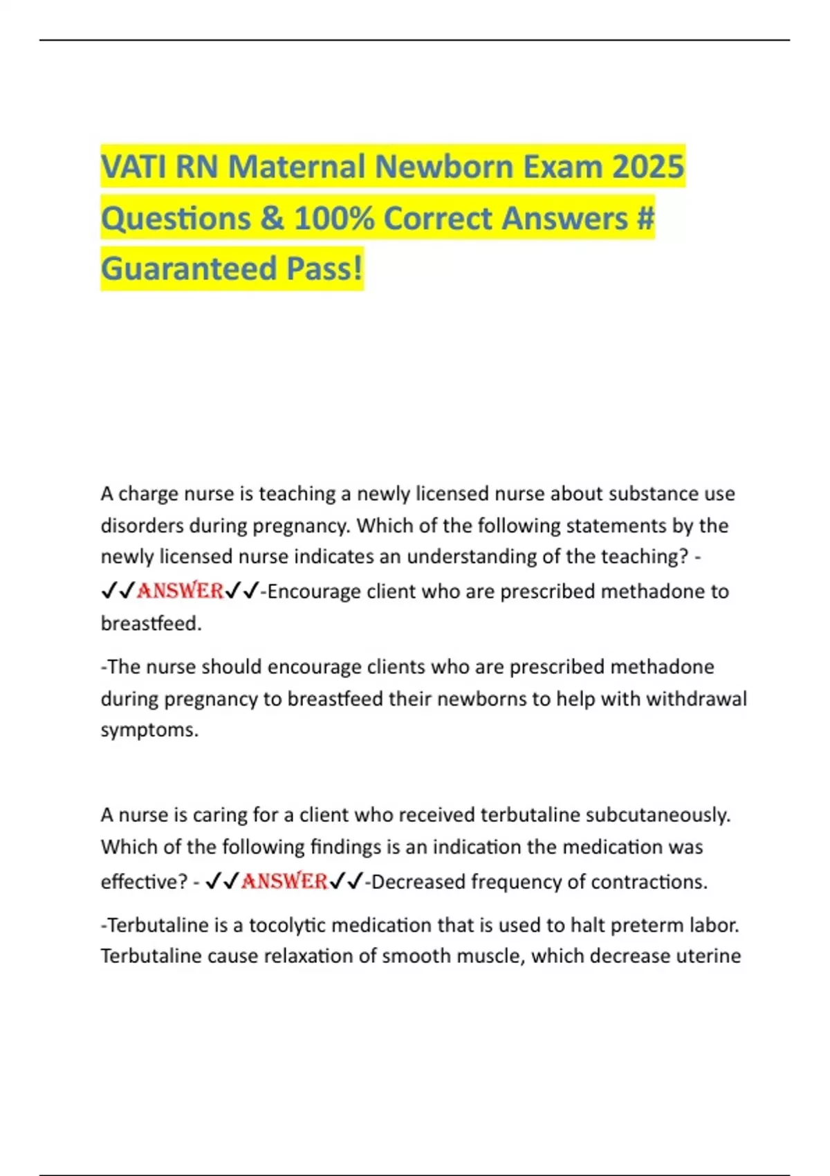 ✔✔ANSWER✔✔-Encourage client who are prescribed methadone to
