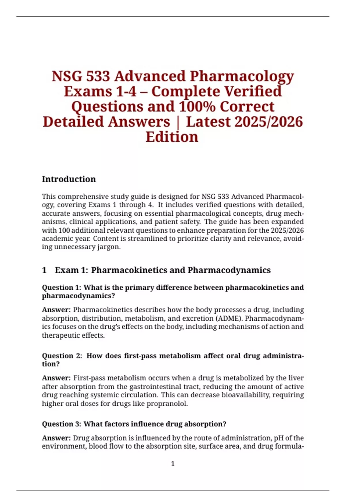 This comprehensive study guide is designed for NSG 533 Advanced Pharmacol-