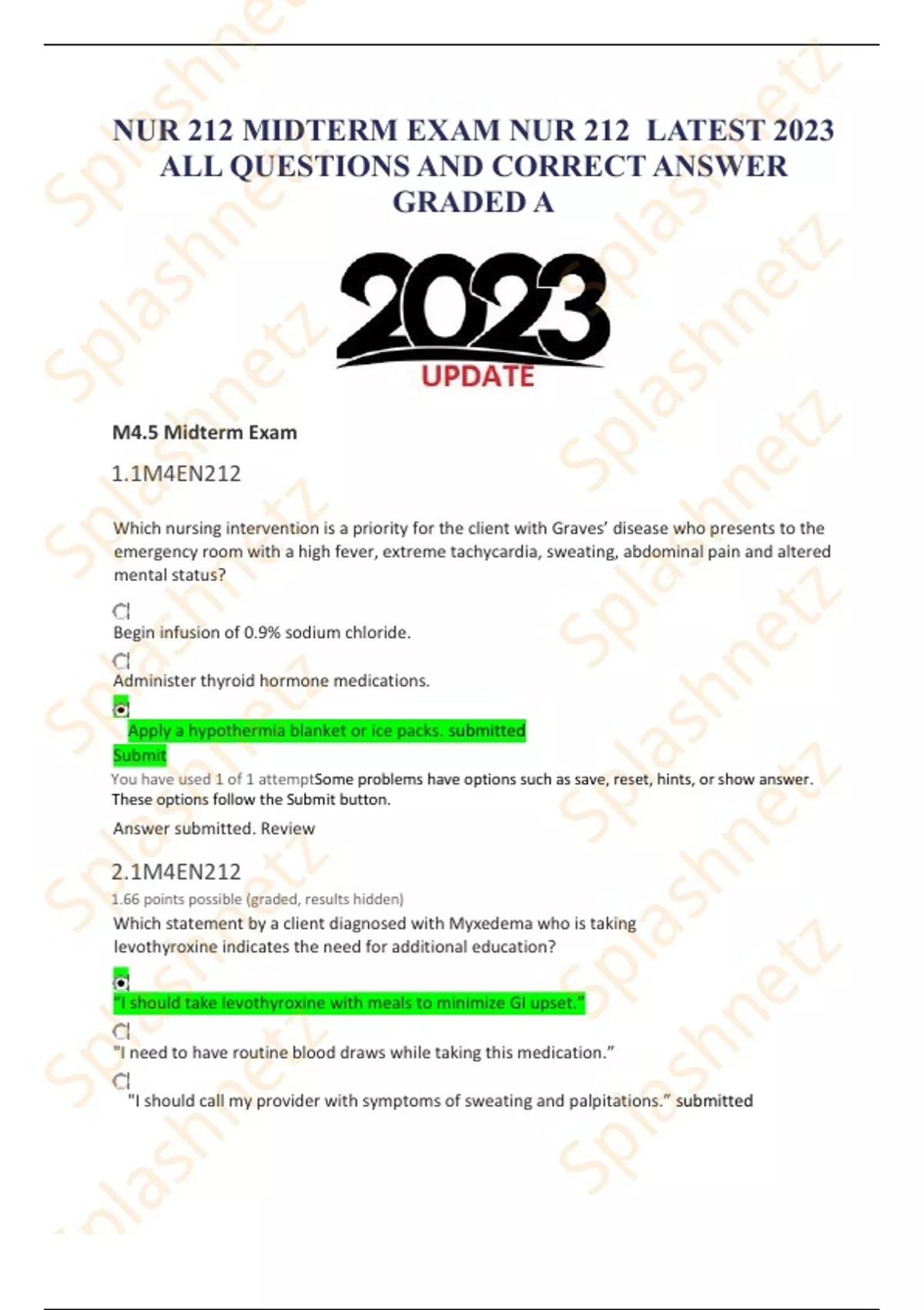 NUR 212 MIDTERM EXAM NUR 212 LATEST 2023