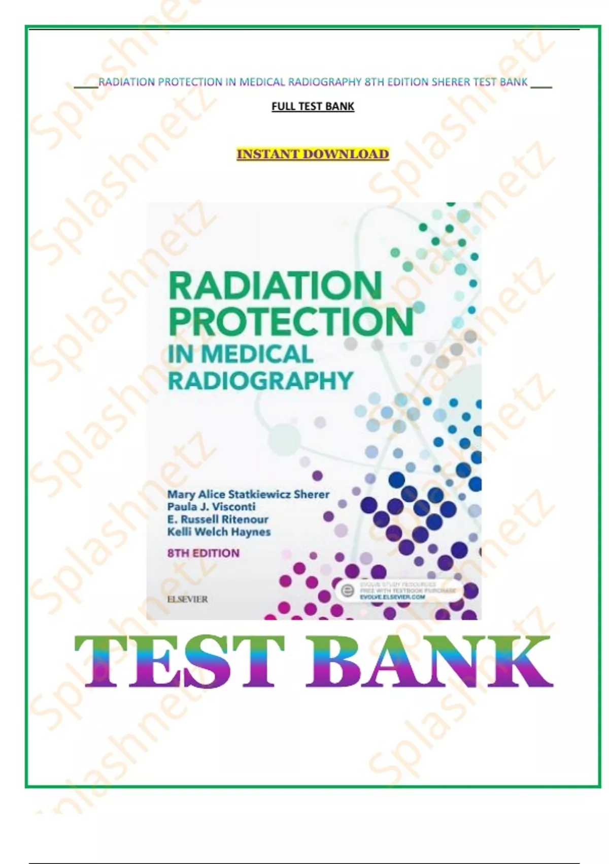 , Radiation Protection in Medical Radiography 8th Edition Sherer Test Bank