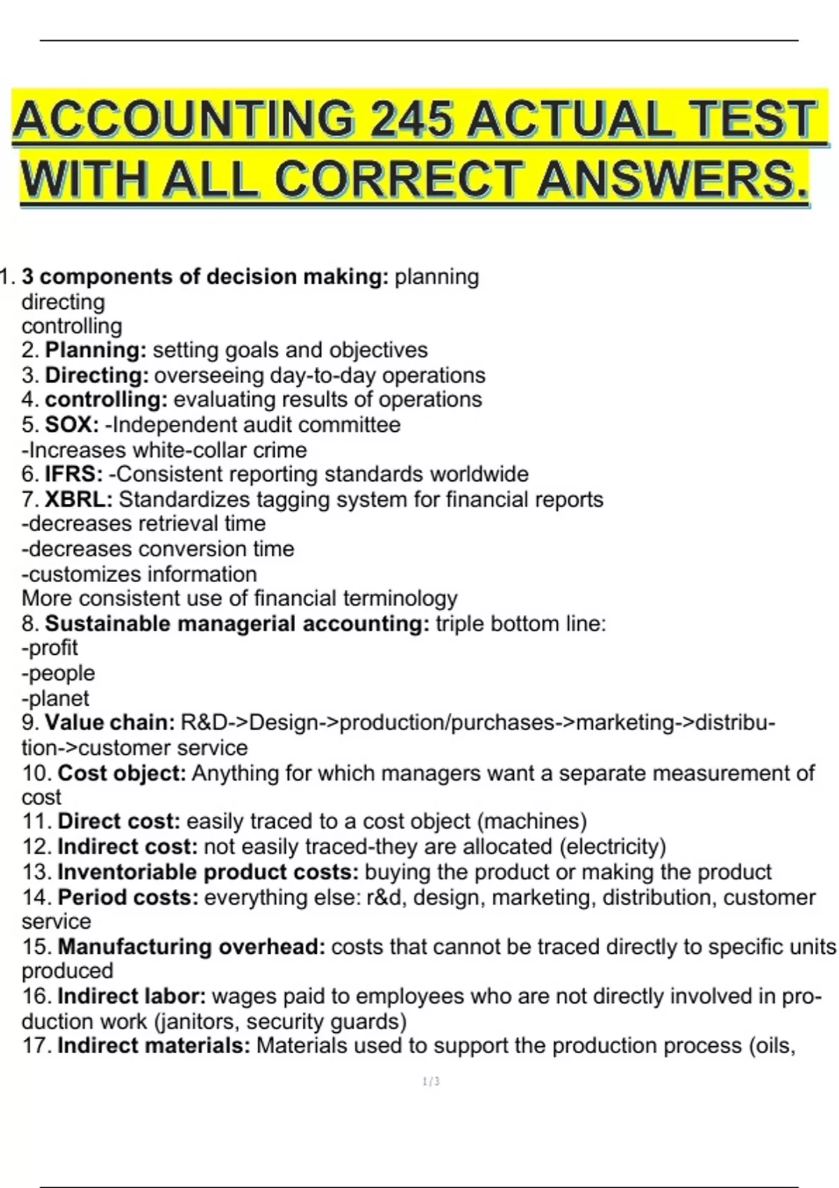 ACCOUNTING 245 ACTUAL TEST WITH ALL CORRECT ANSWERS. ACCOUNTING 245 ACTUAL TEST WITH ALL CORRECT ANSWERS. ACCOUNTING 245 ACTUAL TEST WITH ALL CORRECT ANSWERS.