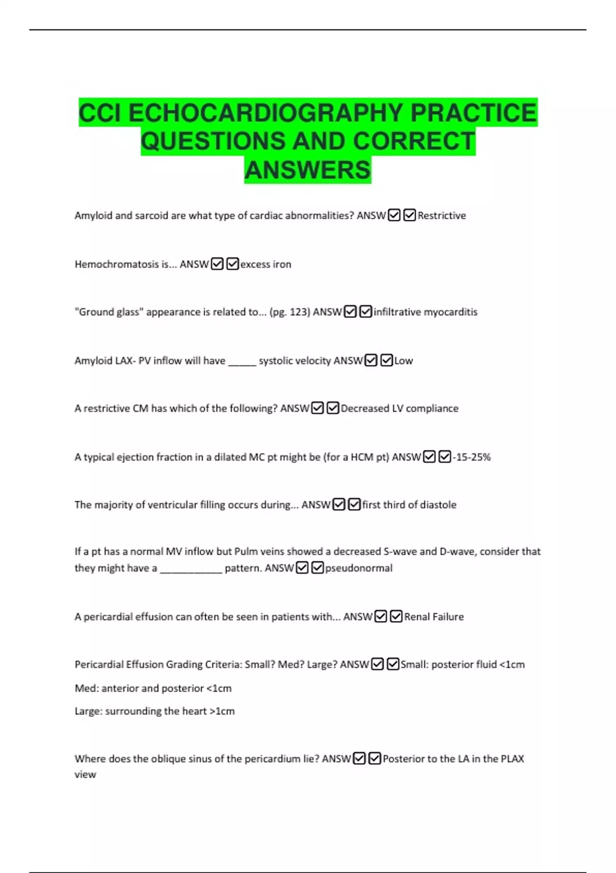 Amyloid LAX- PV inflow will have _____ systolic velocity ANSW✅✅Low