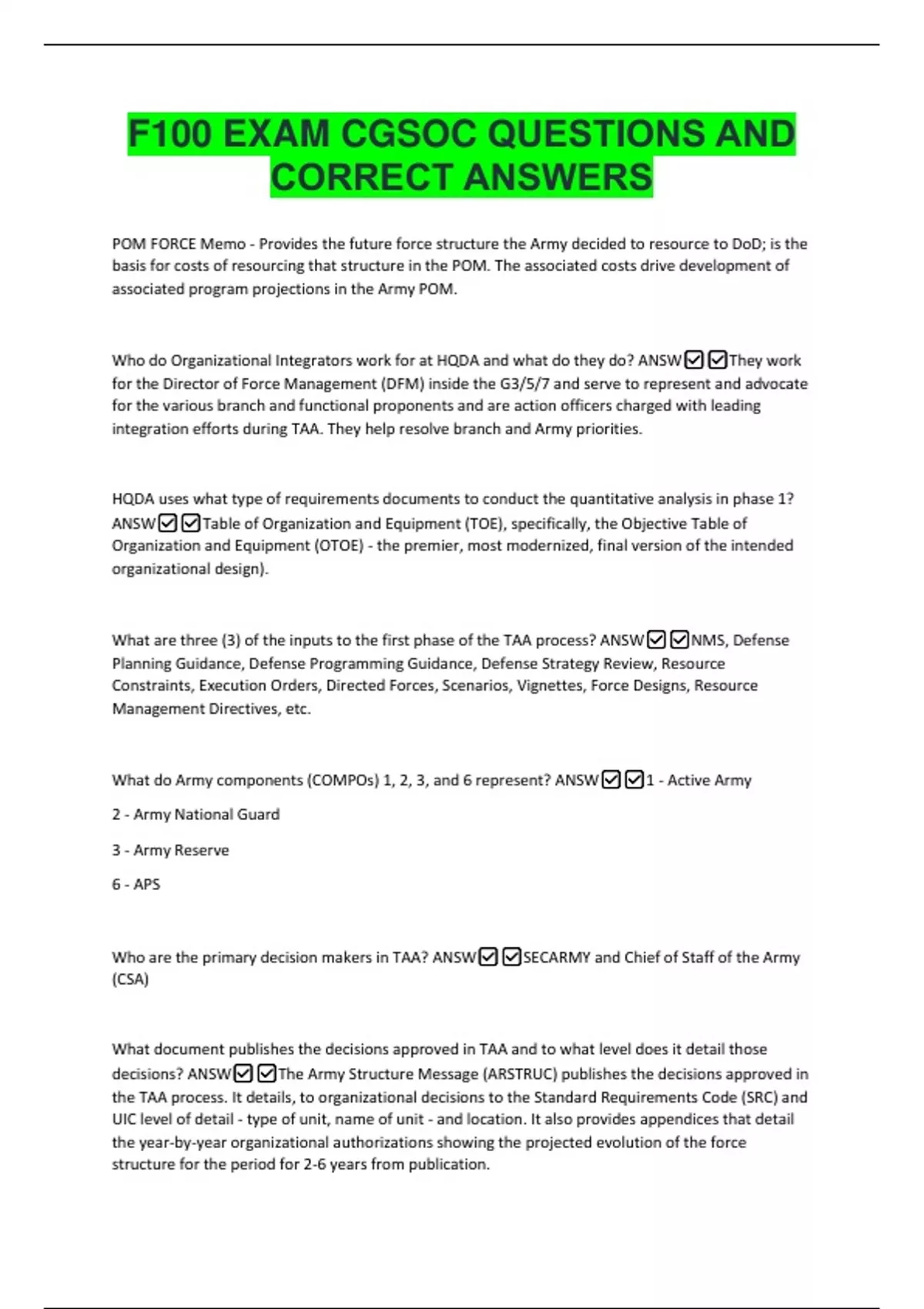 F100 EXAM CGSOC QUESTIONS AND