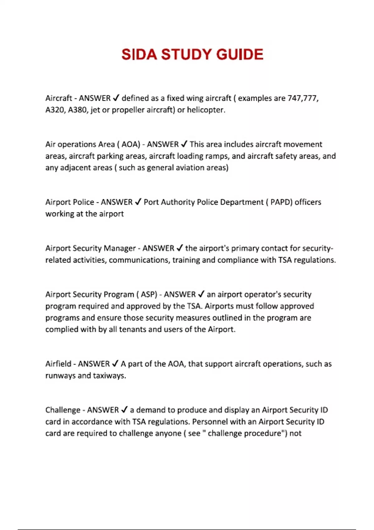 SIDA STUDY GUIDE QUESTIONS AND ANSWERS