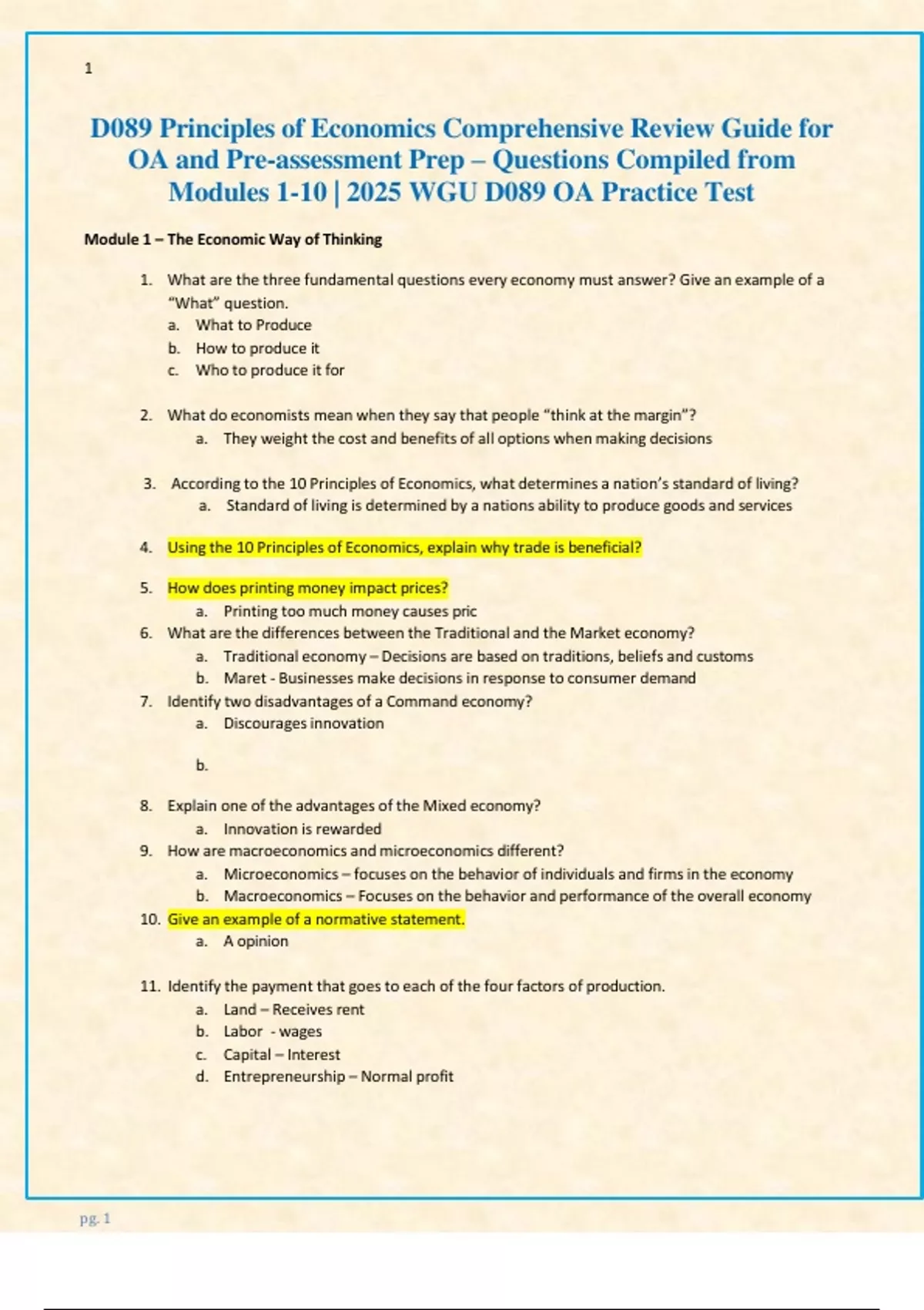D089 Principles of Economics Comprehensive Review Guide for OA and Pre-assessment Prep – Questions Compiled from Modules 1-10 | 2025 WGU D089 OA Practice Test