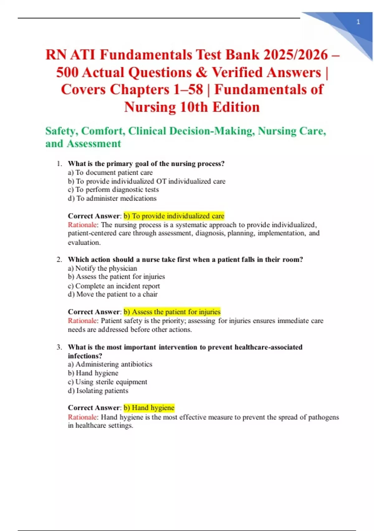 RN ATI Fundamentals Test Bank 2025/2026 –