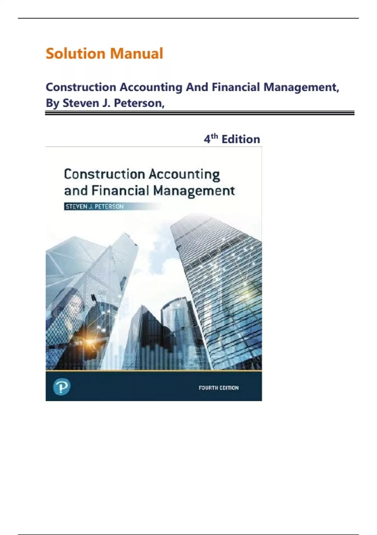 Solution Manual For Construction Accounting and Financial Management, 4th Edition by Steven J. Peterson, Complete Chapters 1 - 18, LATEST