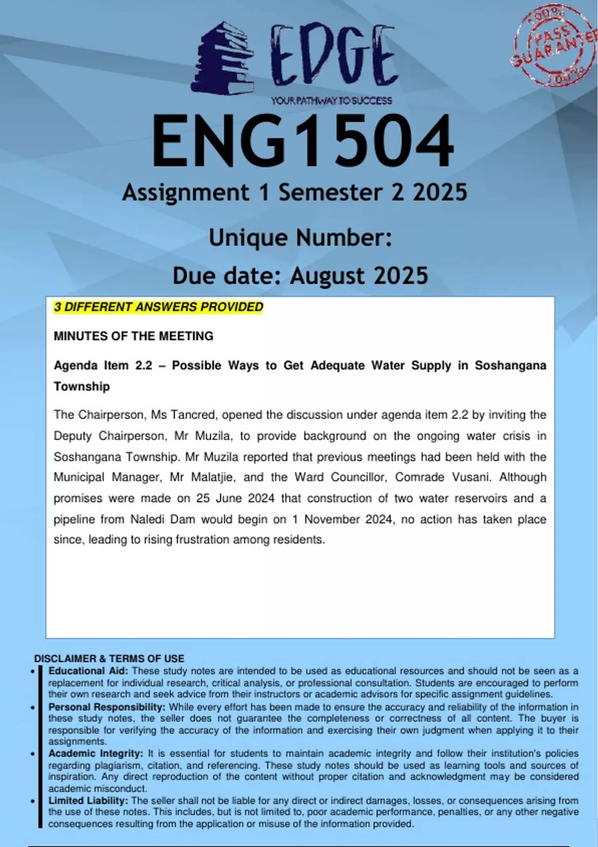 these study notes, the seller does not guarantee the completeness or correctness of all content. The buyer is