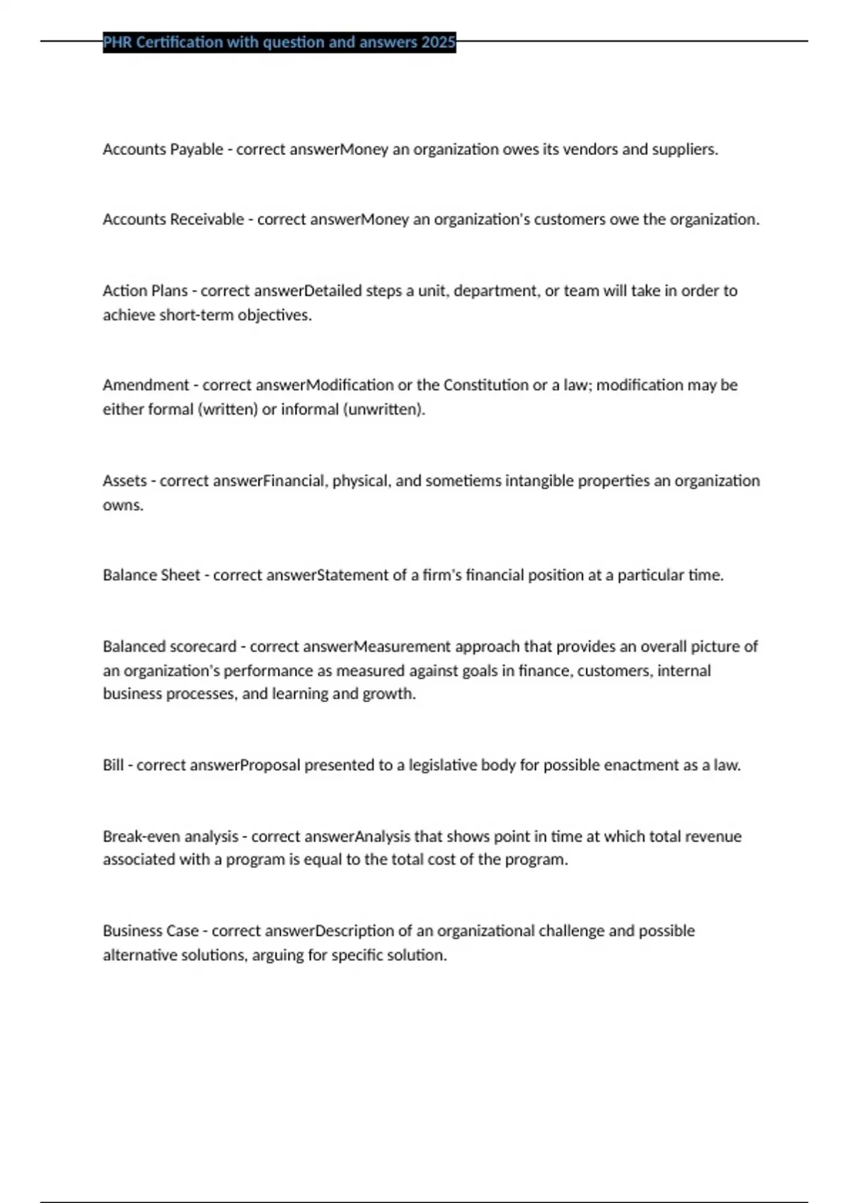 Balanced scorecard - correct answerMeasurement approach that provides an overall picture of