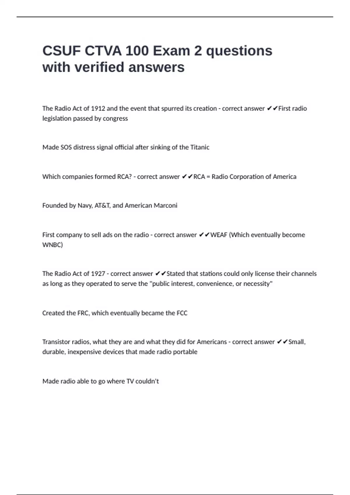 The Radio Act of 1912 and the event that spurred its creation - correct answer ✔✔First radio