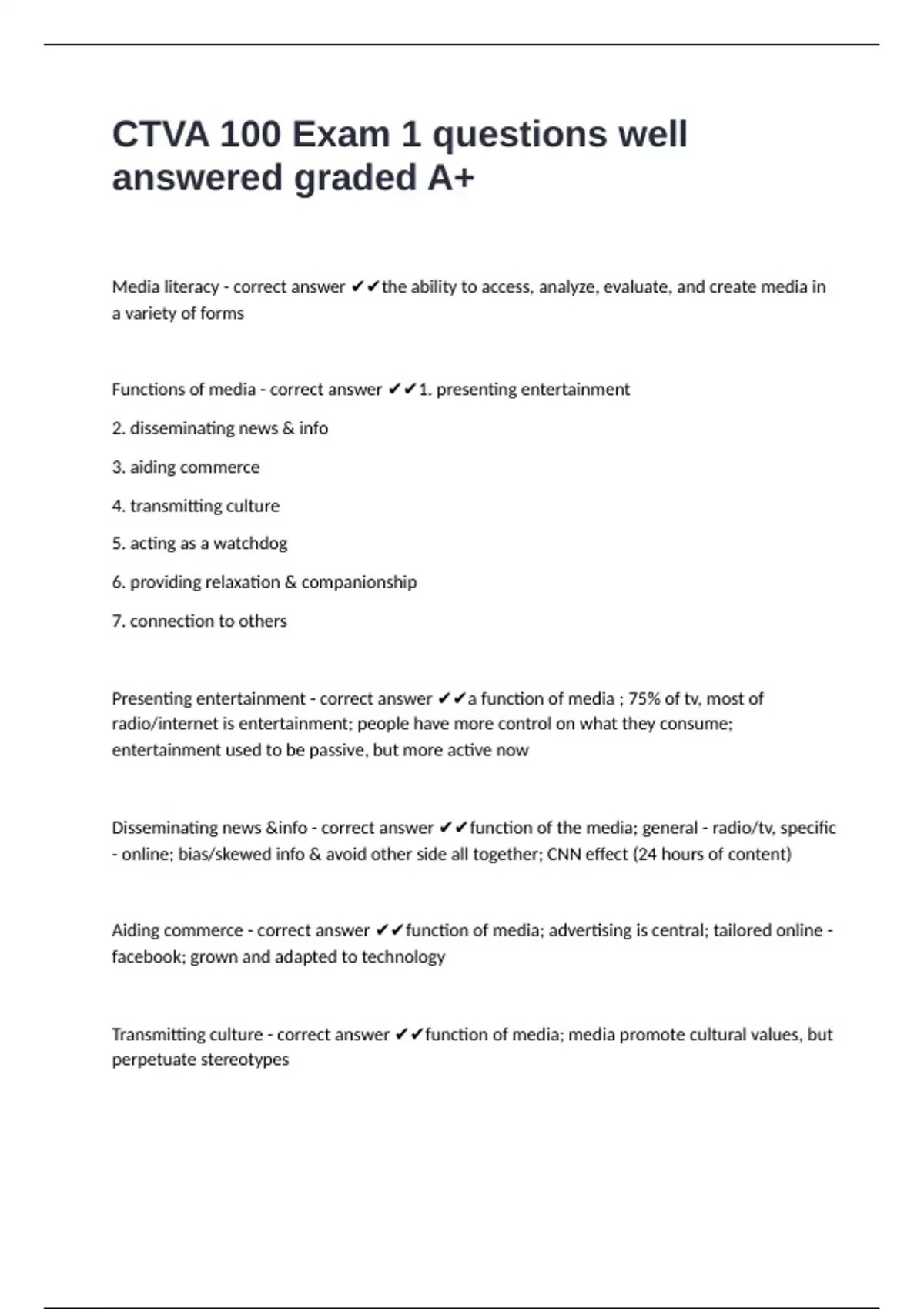 CTVA 100 Exam 1 questions well answered graded A+