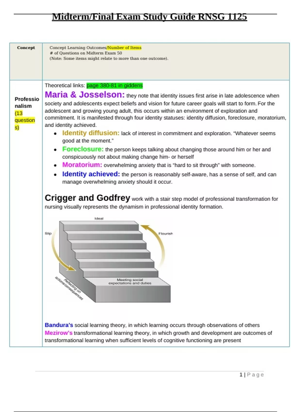 , Midterm/Final Exam Study Guide RNSG 1125