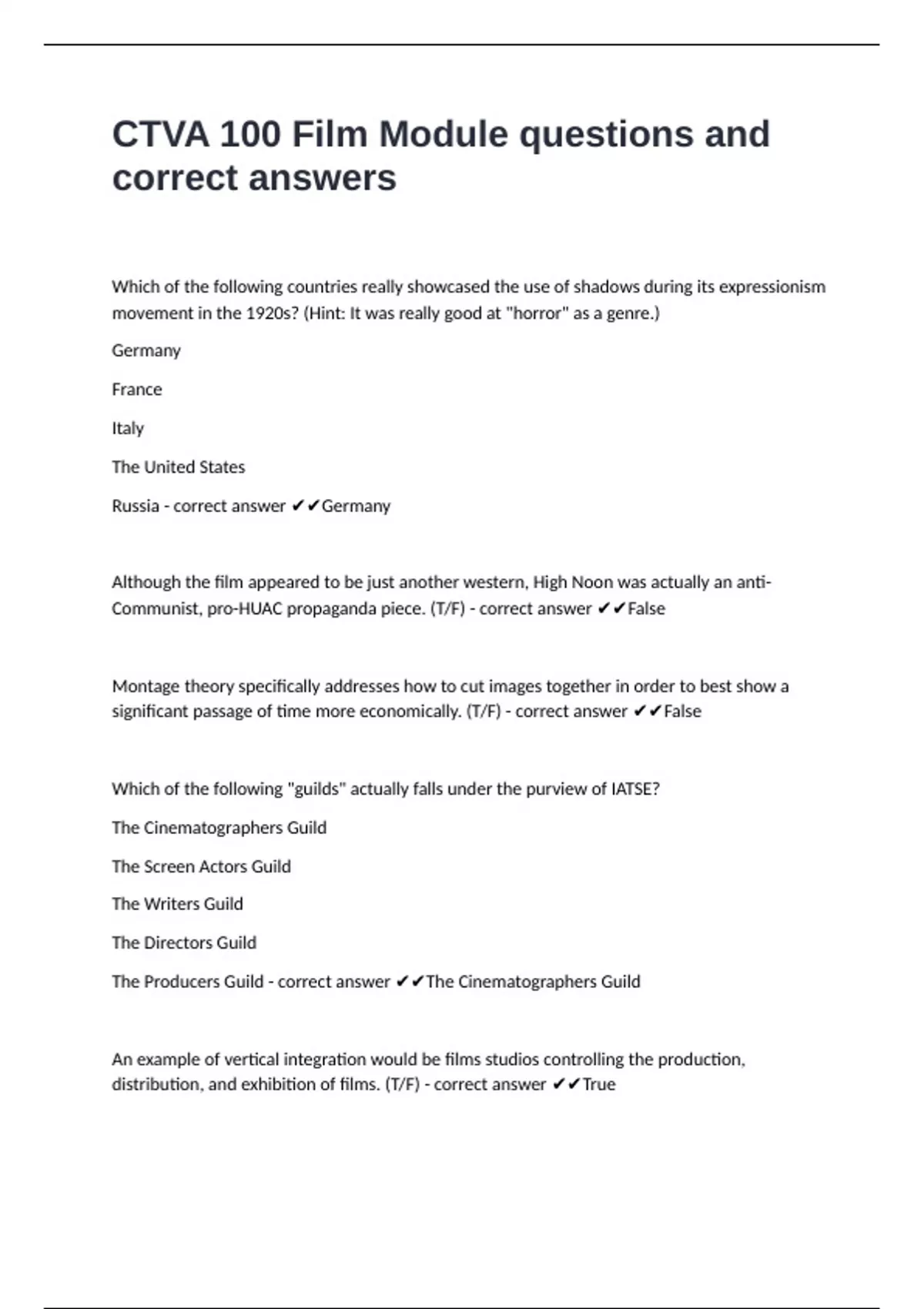 correct answers