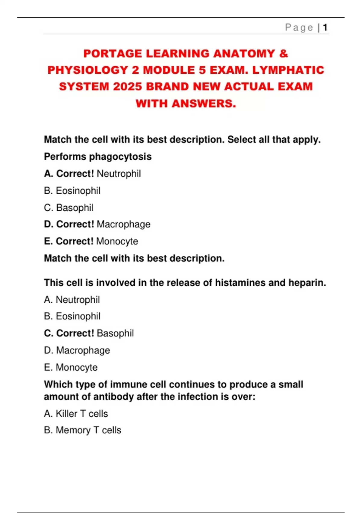 PORTAGE LEARNING ANATOMY & PHYSIOLOGY 2 MODULE 5 EXAM. LYMPHATIC SYSTEM 2025 BRAND NEW ACTUAL EXAM WITH ANSWERS.