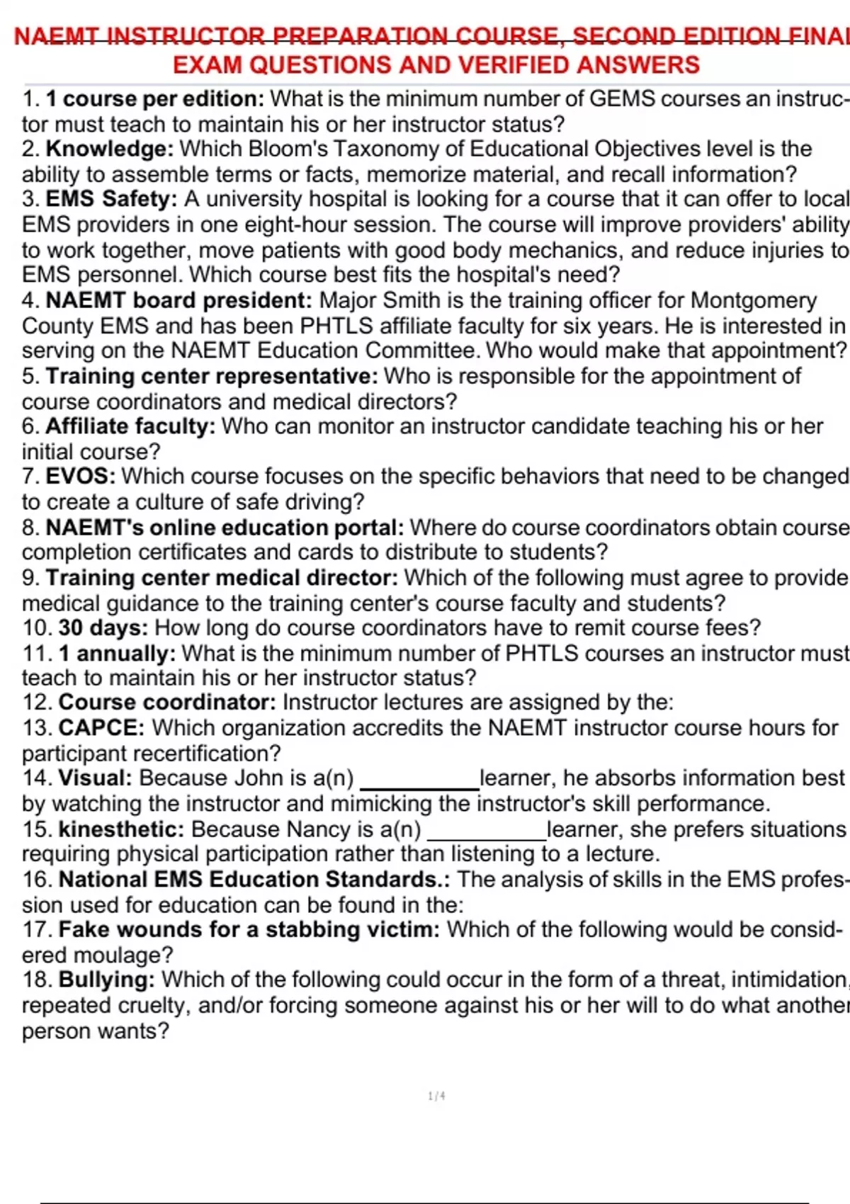 11. 1 annually: What is the minimum number of PHTLS courses an instructor must