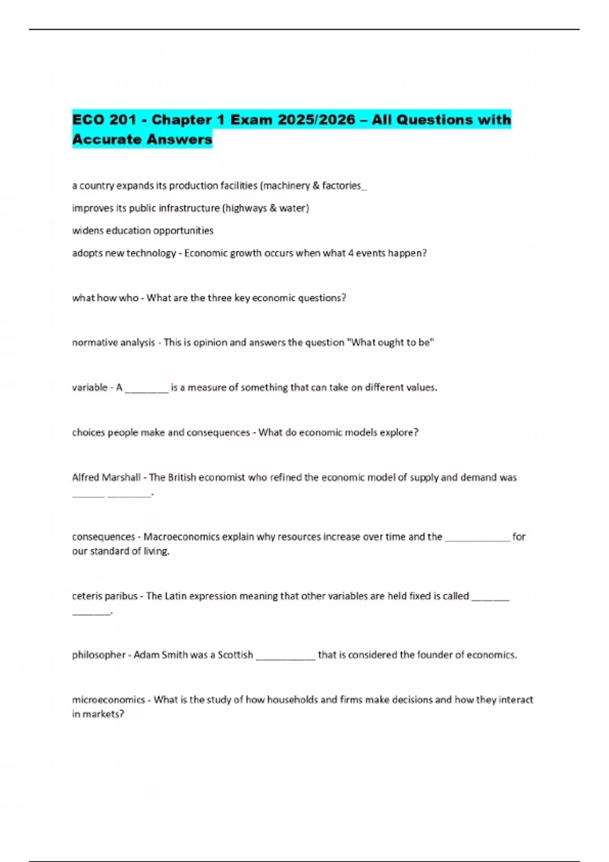 ECO 201 - Chapter 1 Exam 2025/2026 – All Questions with Accurate Answers