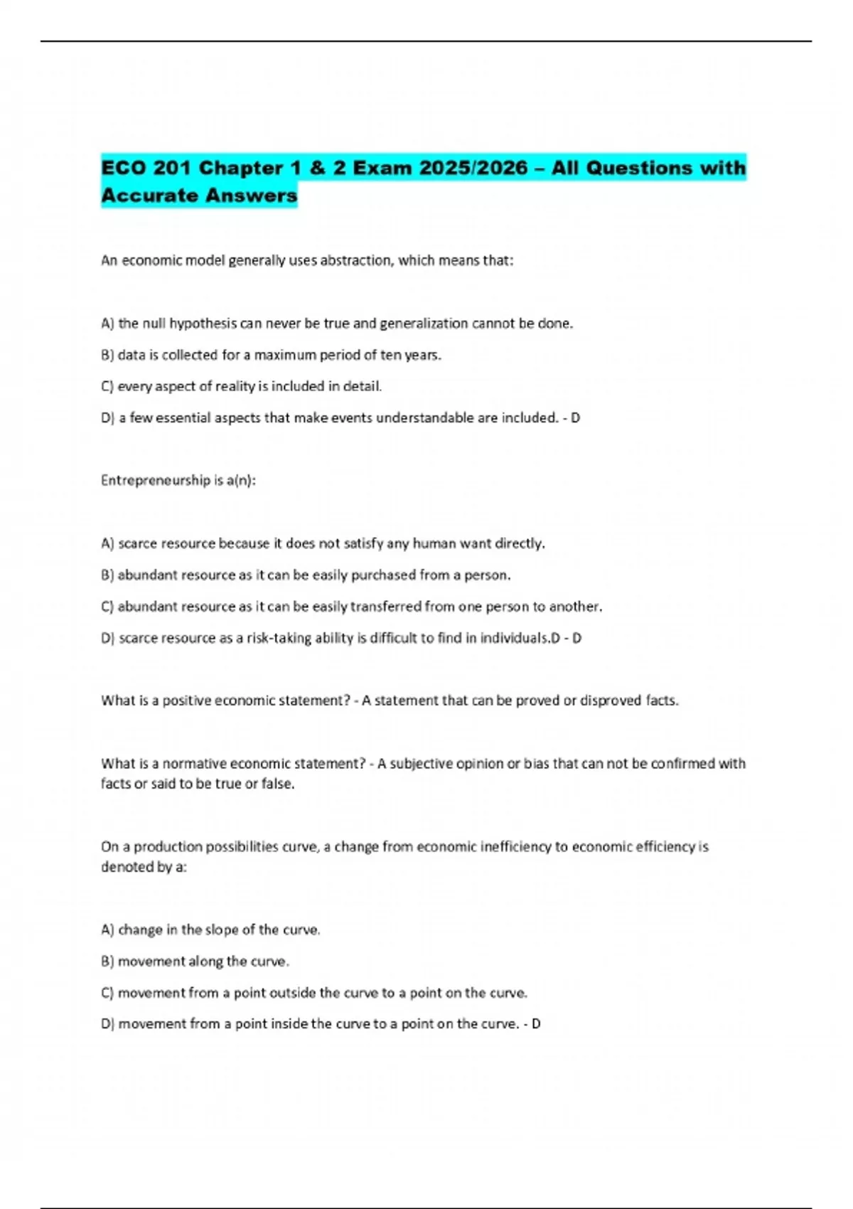ECO 201 Chapter 1 & 2 Exam 2025/2026 – All Questions with Accurate Answers