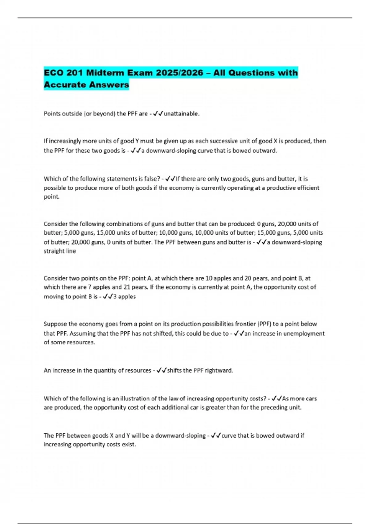 PACKAGE DEAL FOR ECO 201 Exams 2025/2026 – Verified Questions and Correct Answers