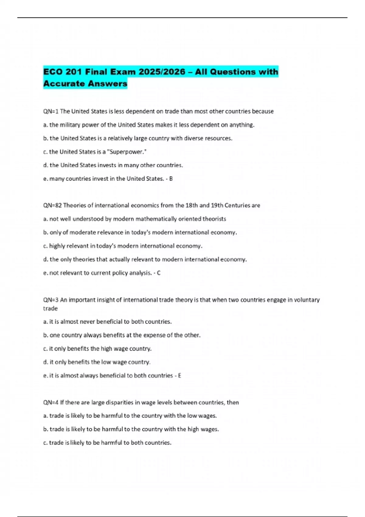 PACKAGE DEAL FOR ECO 201 Exams 2025/2026 – Verified Questions and Correct Answers