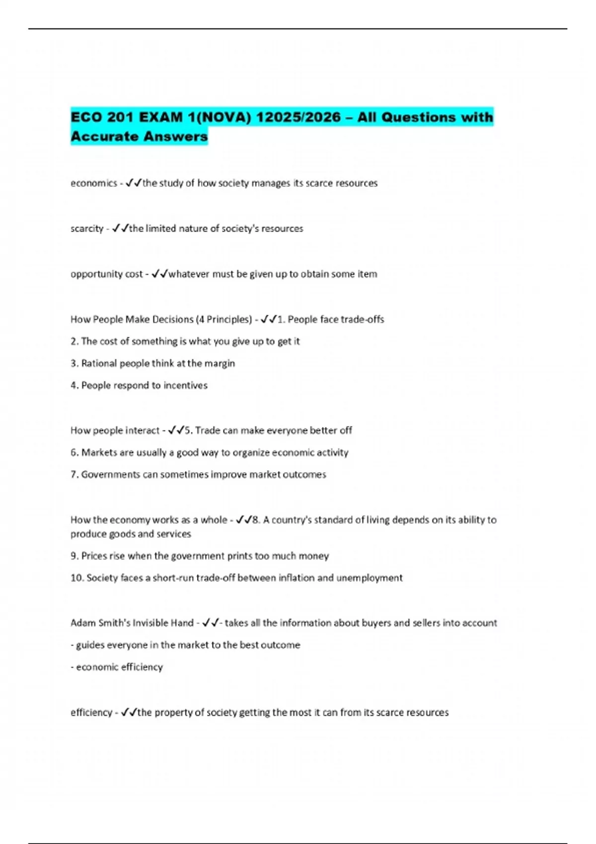 eco 201 exam 1nova all questions wi