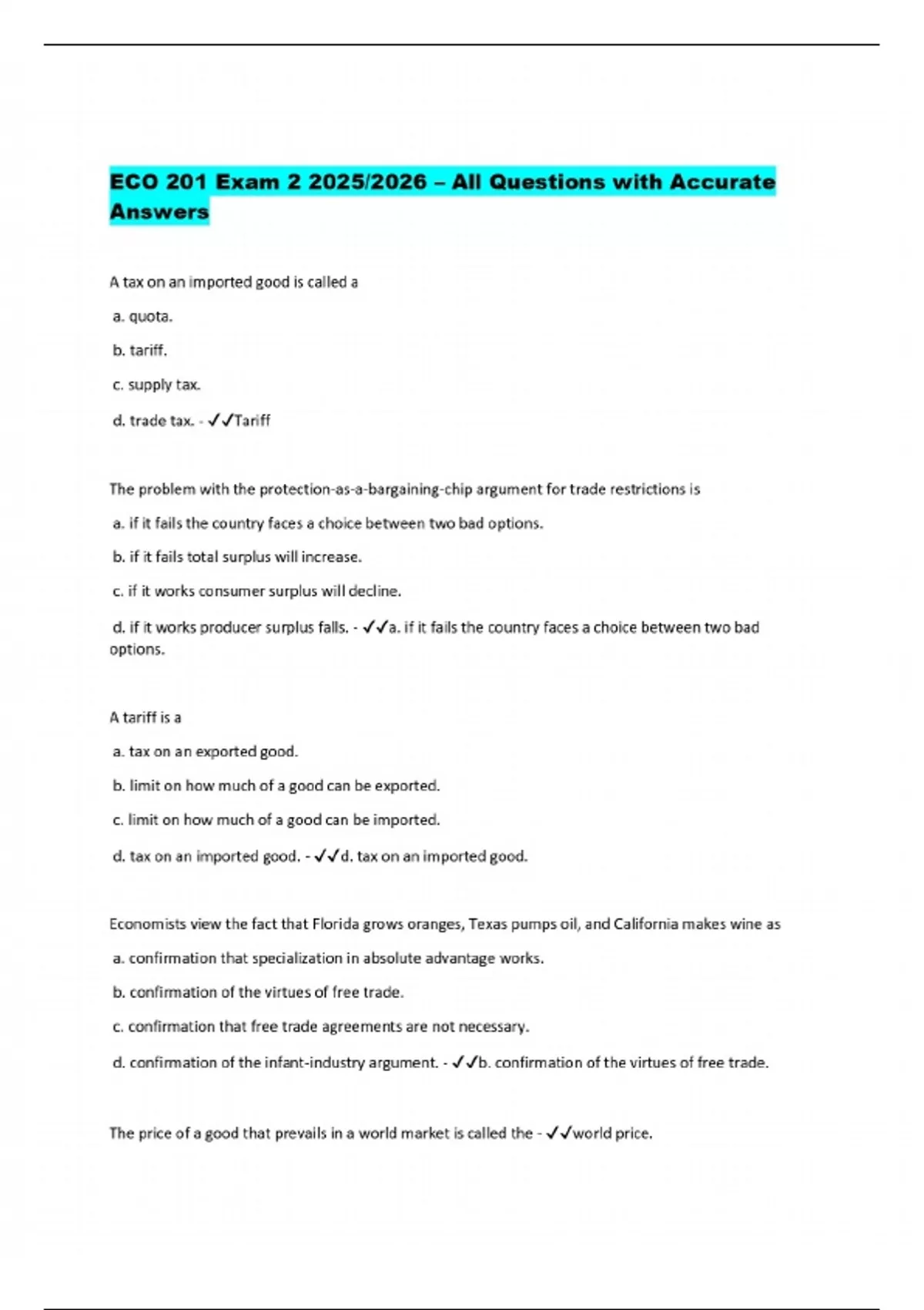 PACKAGE DEAL FOR ECO 201 Exams 2025/2026 – Verified Questions and Correct Answers