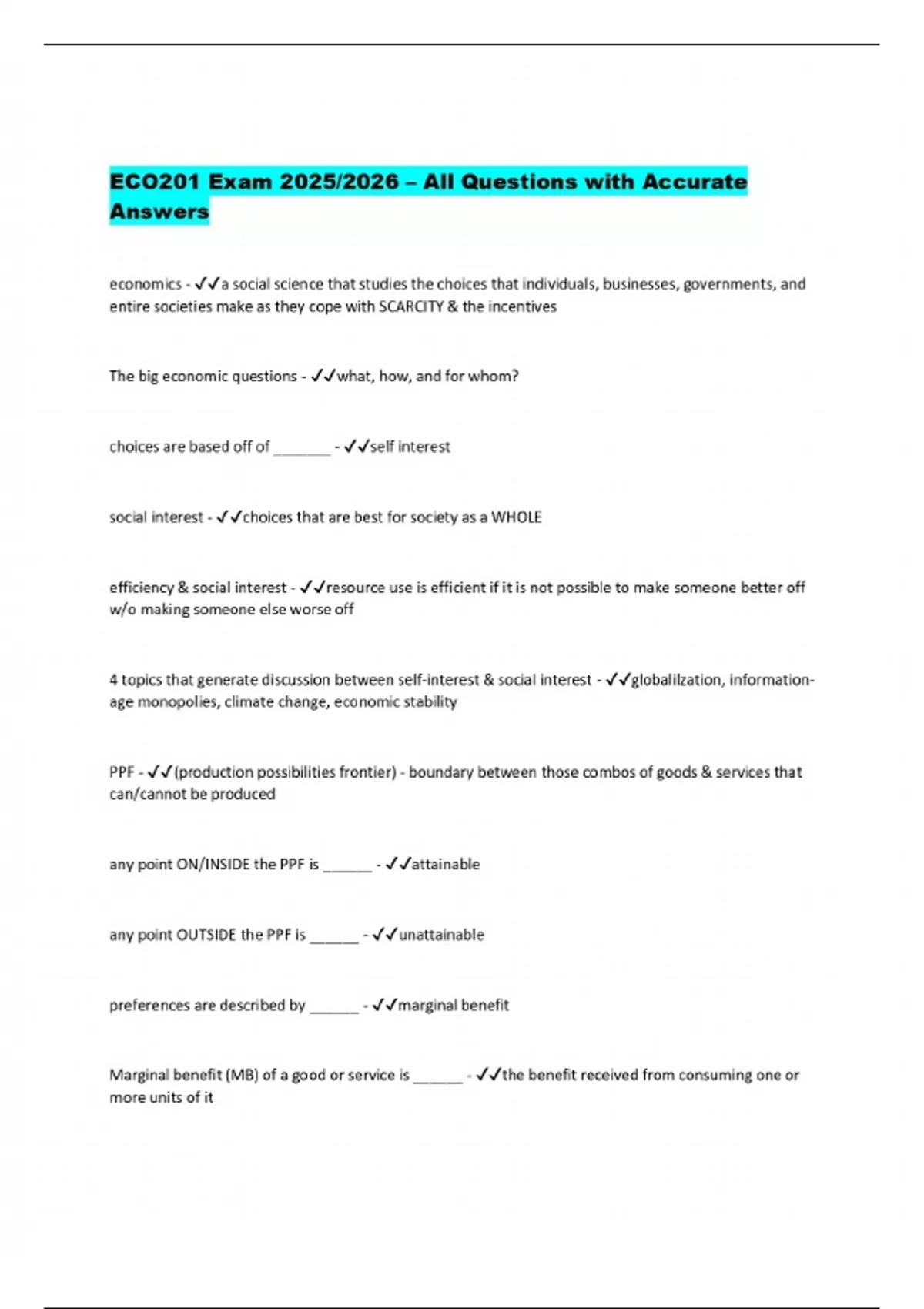 PACKAGE DEAL FOR ECO 201 Exams 2025/2026 – Verified Questions and Correct Answers