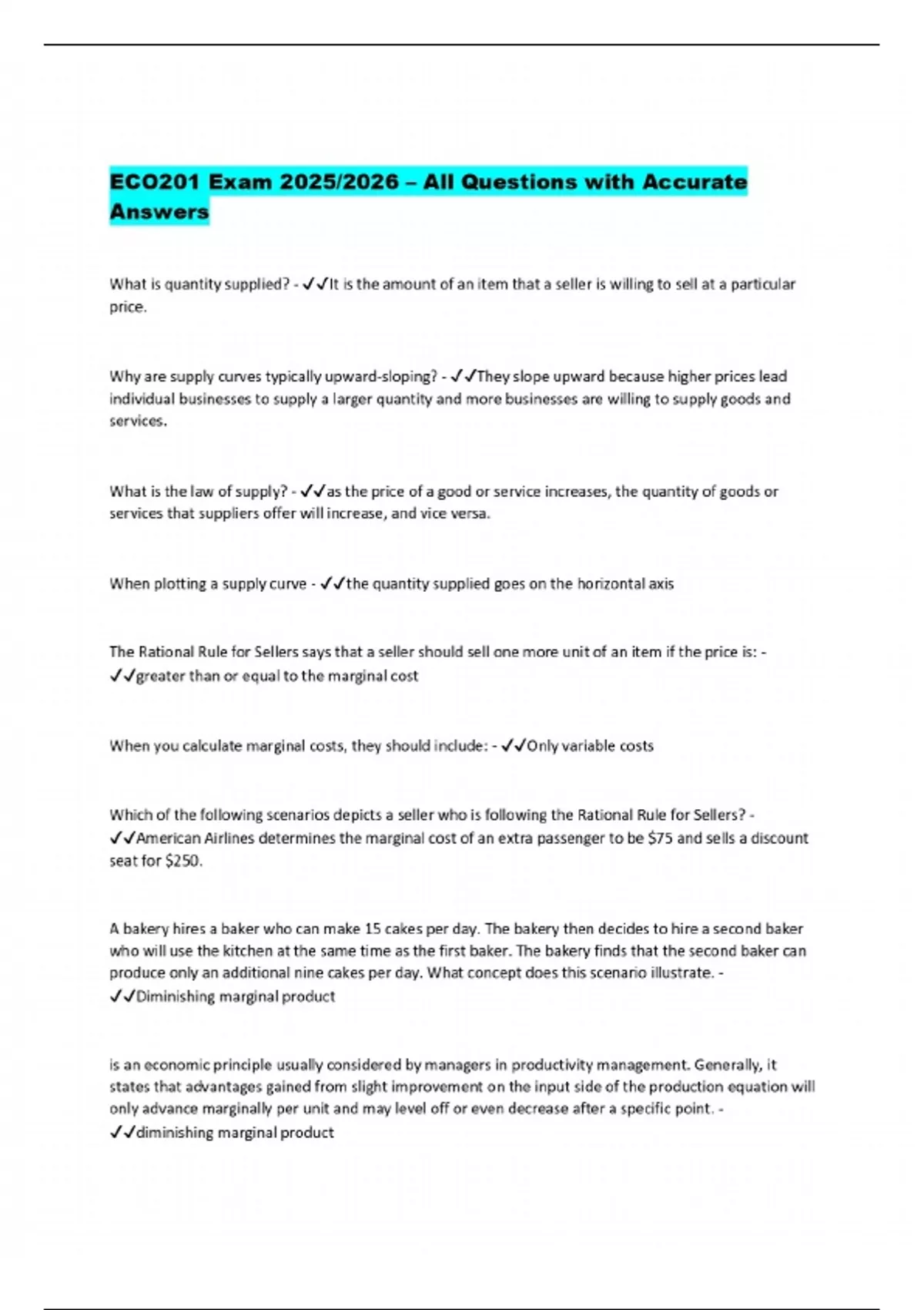 ECO201 Exam 2025/2026 – All Questions with Accurate Answers