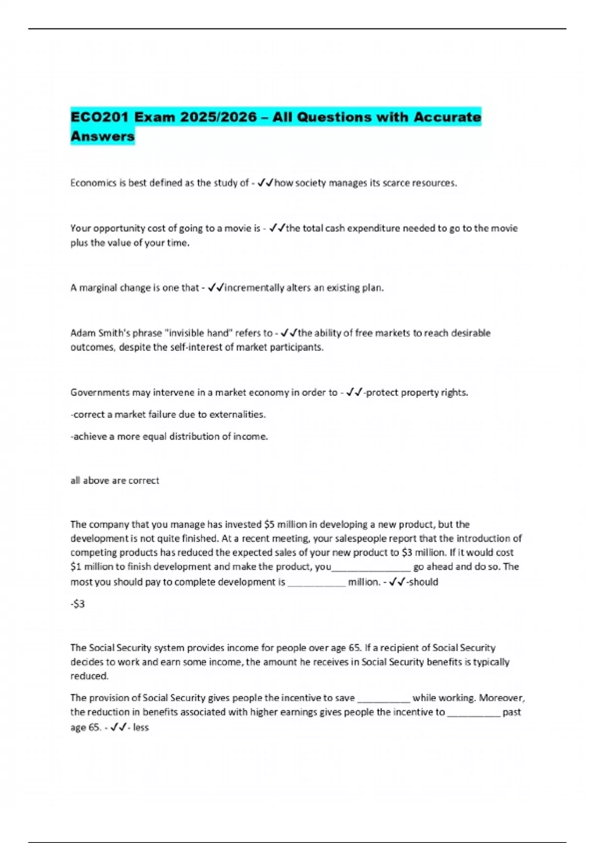 PACKAGE DEAL FOR ECO 201 Exams 2025/2026 – Verified Questions and Correct Answers
