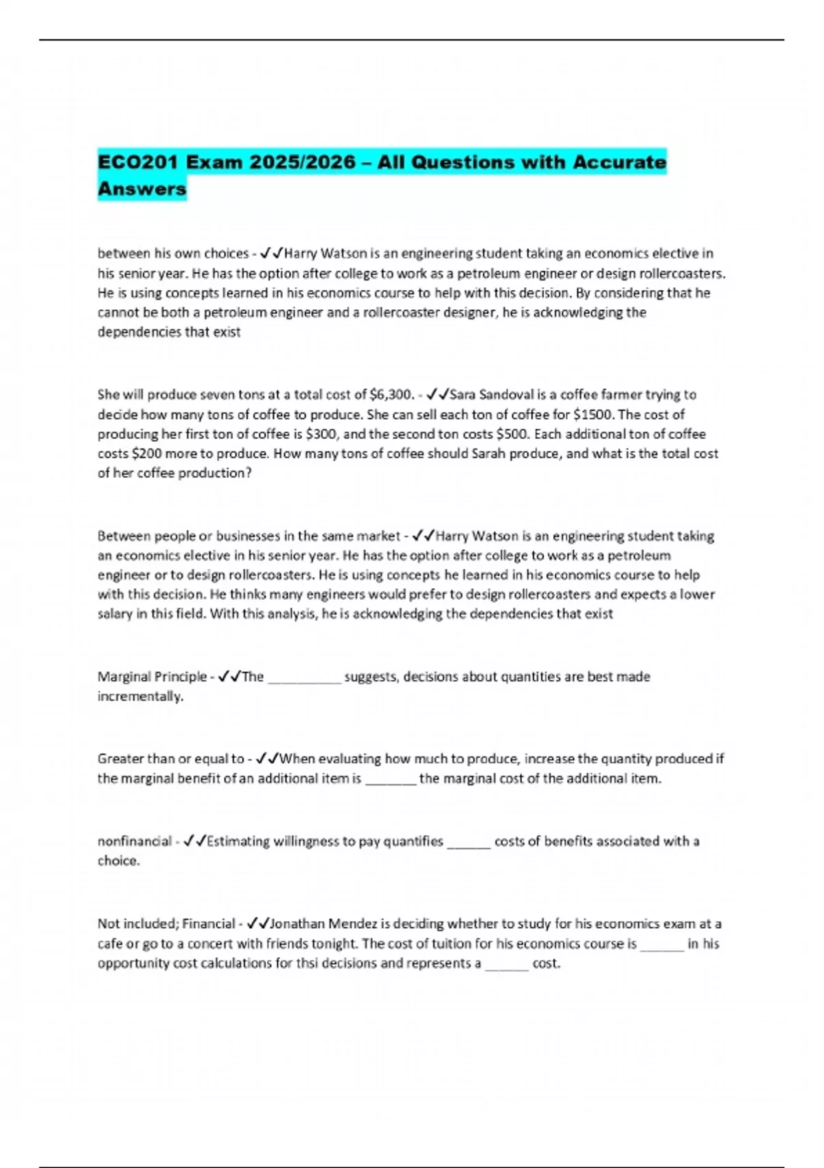 PACKAGE DEAL FOR ECO 201 Exams 2025/2026 – Verified Questions and Correct Answers