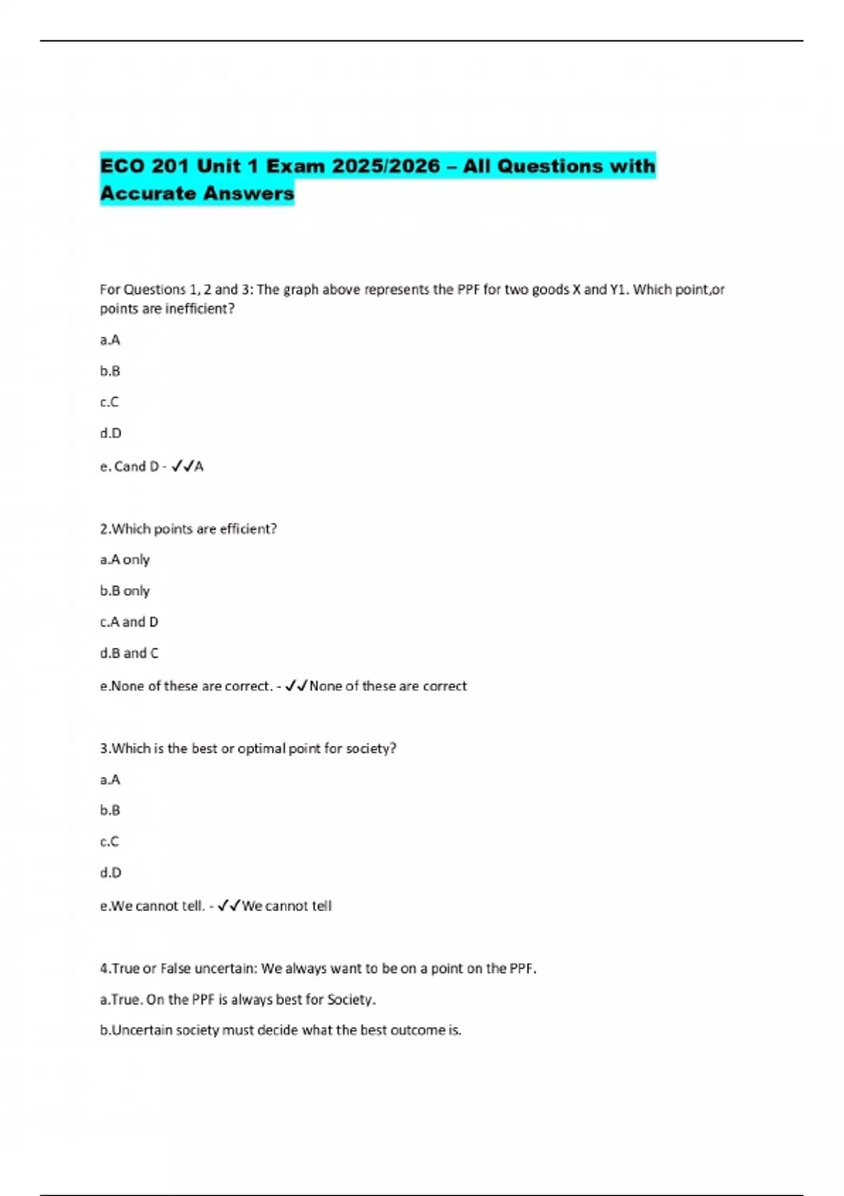 PACKAGE DEAL FOR ECO 201 Exams 2025/2026 – Verified Questions and Correct Answers