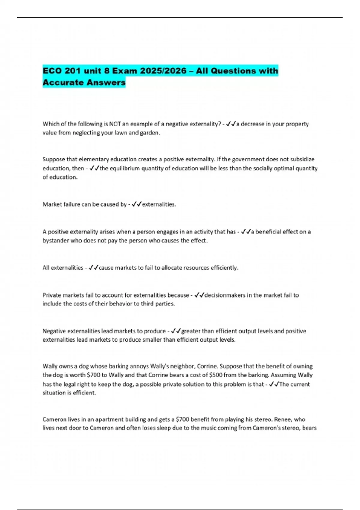 PACKAGE DEAL FOR ECO 201 Exams 2025/2026 – Verified Questions and Correct Answers