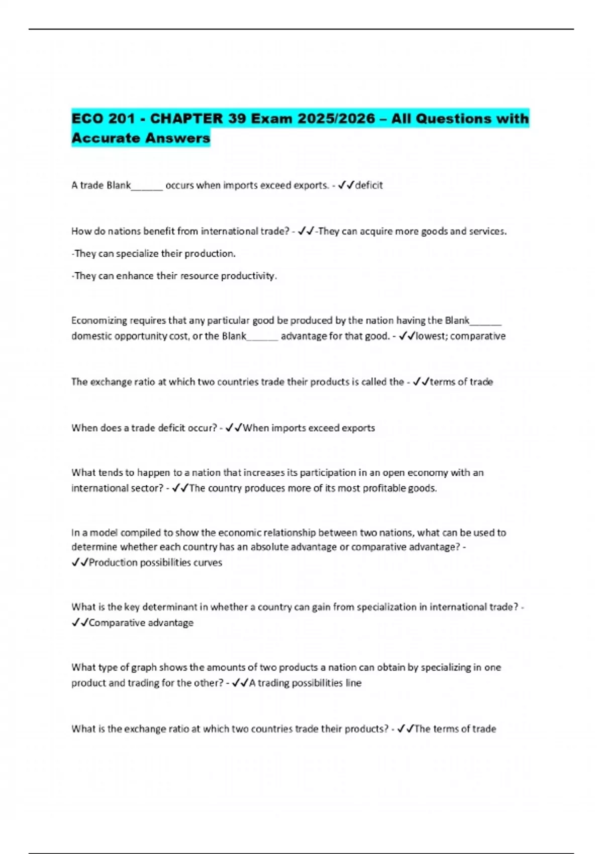 ECO 201 - CHAPTER 39 Exam 2025/2026 – All Questions with Accurate Answers
