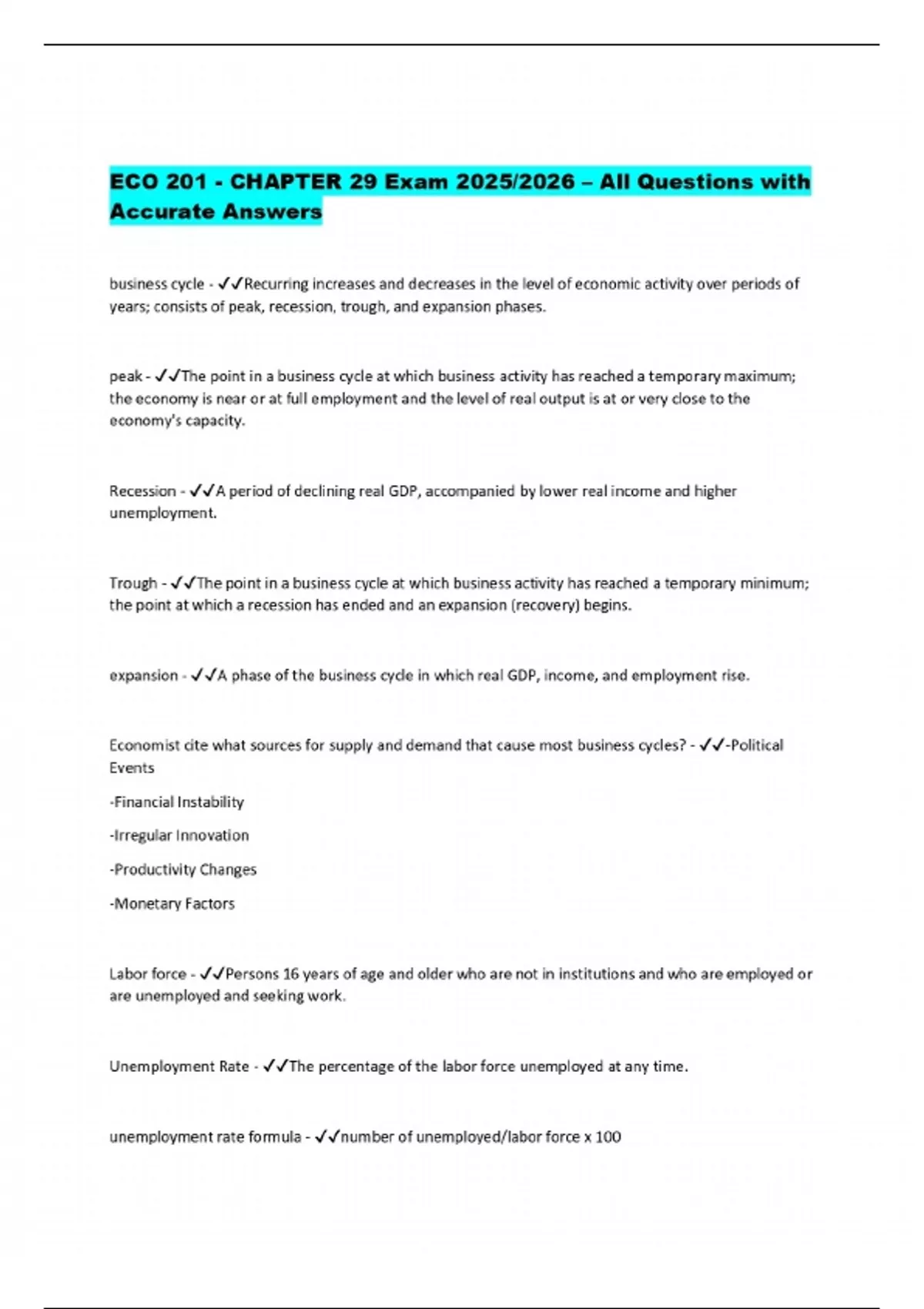 PACKAGE DEAL FOR ECO 201 Exams 2025/2026 – Verified Questions and Correct Answers