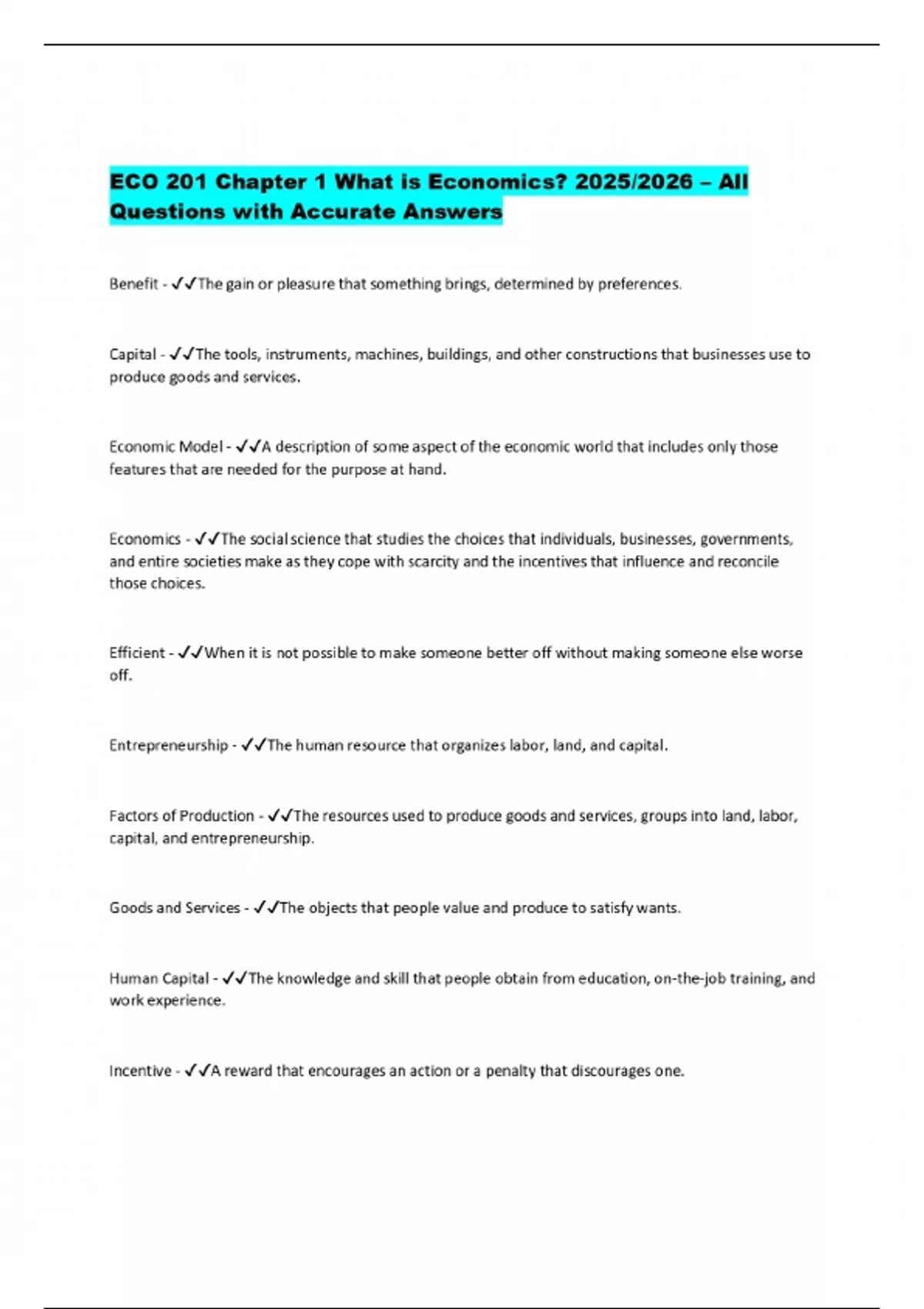 PACKAGE DEAL FOR ECO 201 Exams 2025/2026 – Verified Questions and Correct Answers