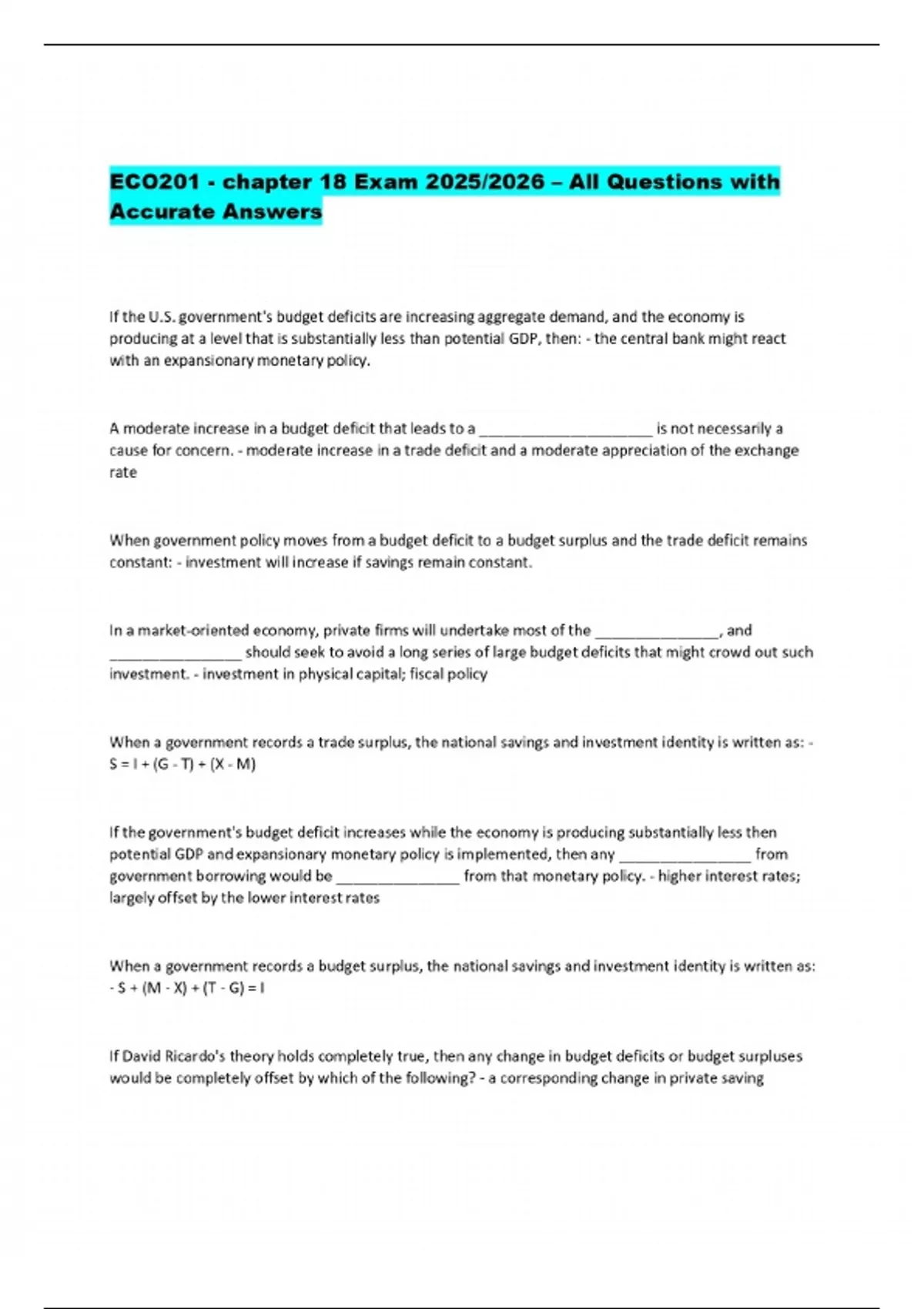ECO201 - chapter 18 Exam 2025/2026 – All Questions with Accurate Answers