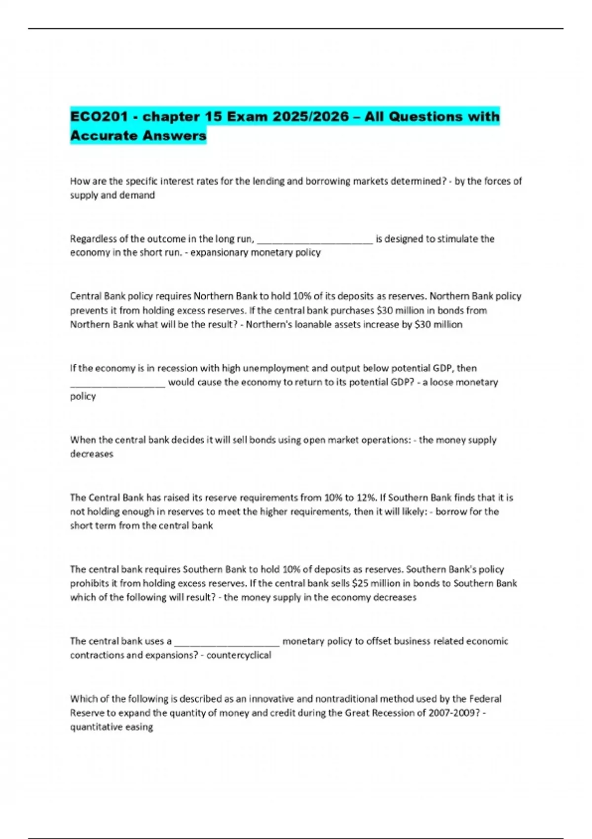 ECO201 - chapter 15 Exam 2025/2026 – All Questions with Accurate Answers
