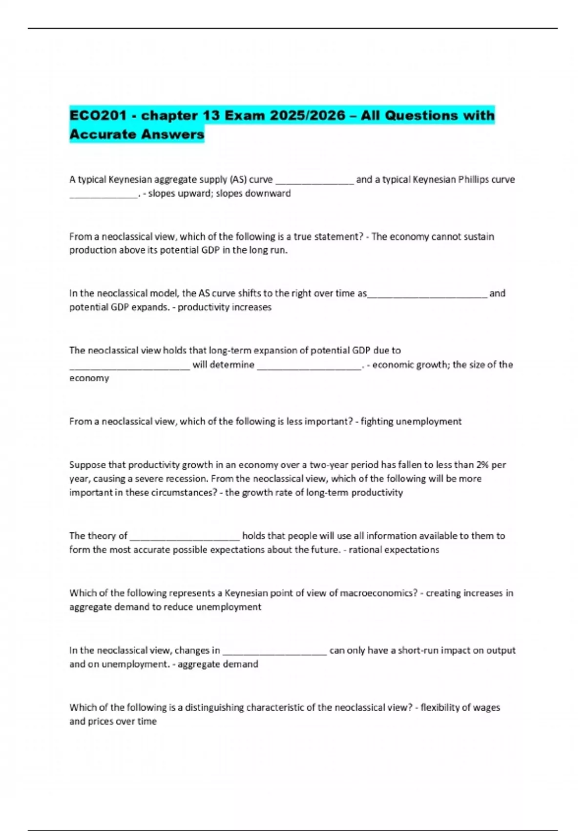 PACKAGE DEAL FOR ECO 201 Exams 2025/2026 – Verified Questions and Correct Answers