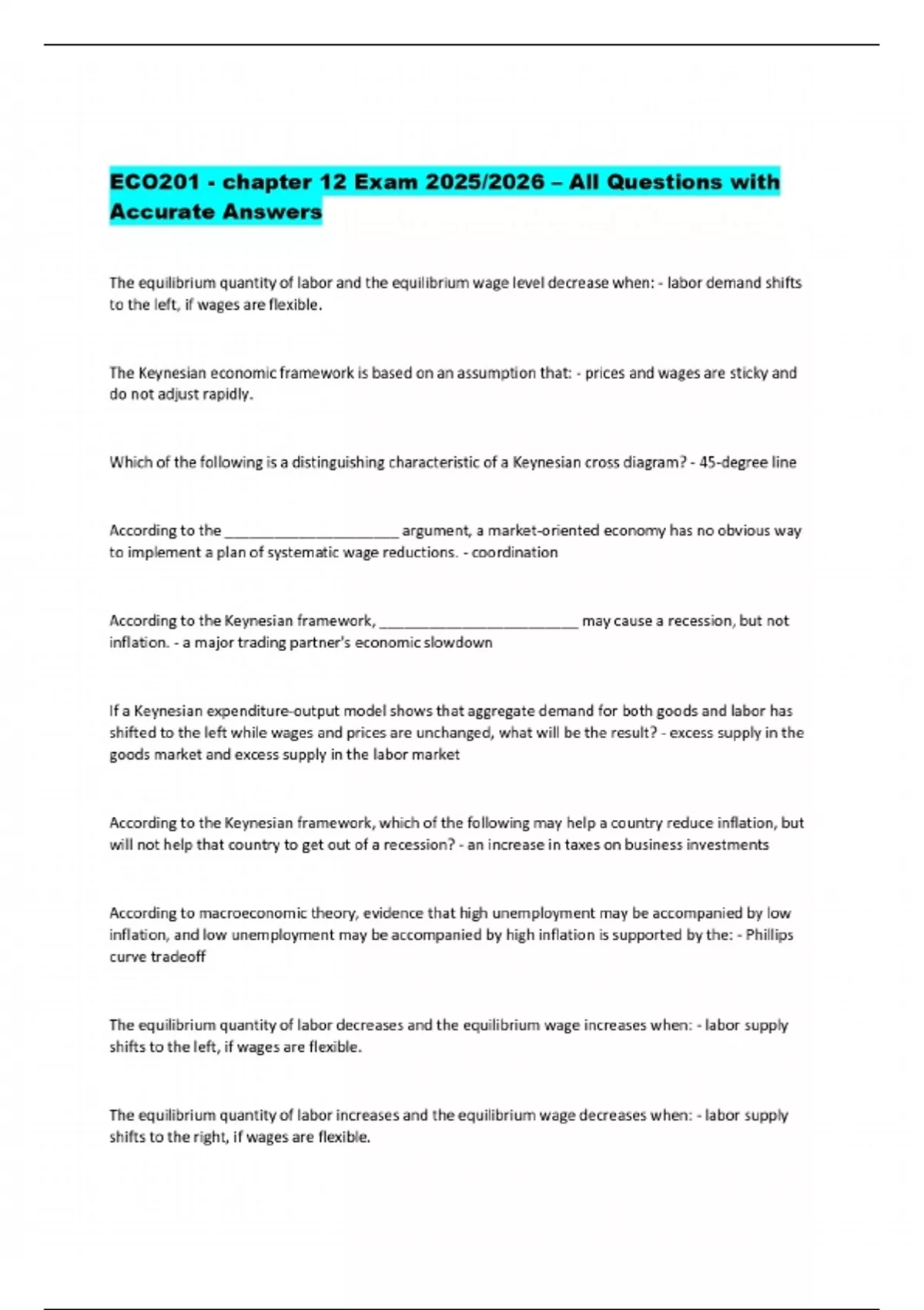 PACKAGE DEAL FOR ECO 201 Exams 2025/2026 – Verified Questions and Correct Answers