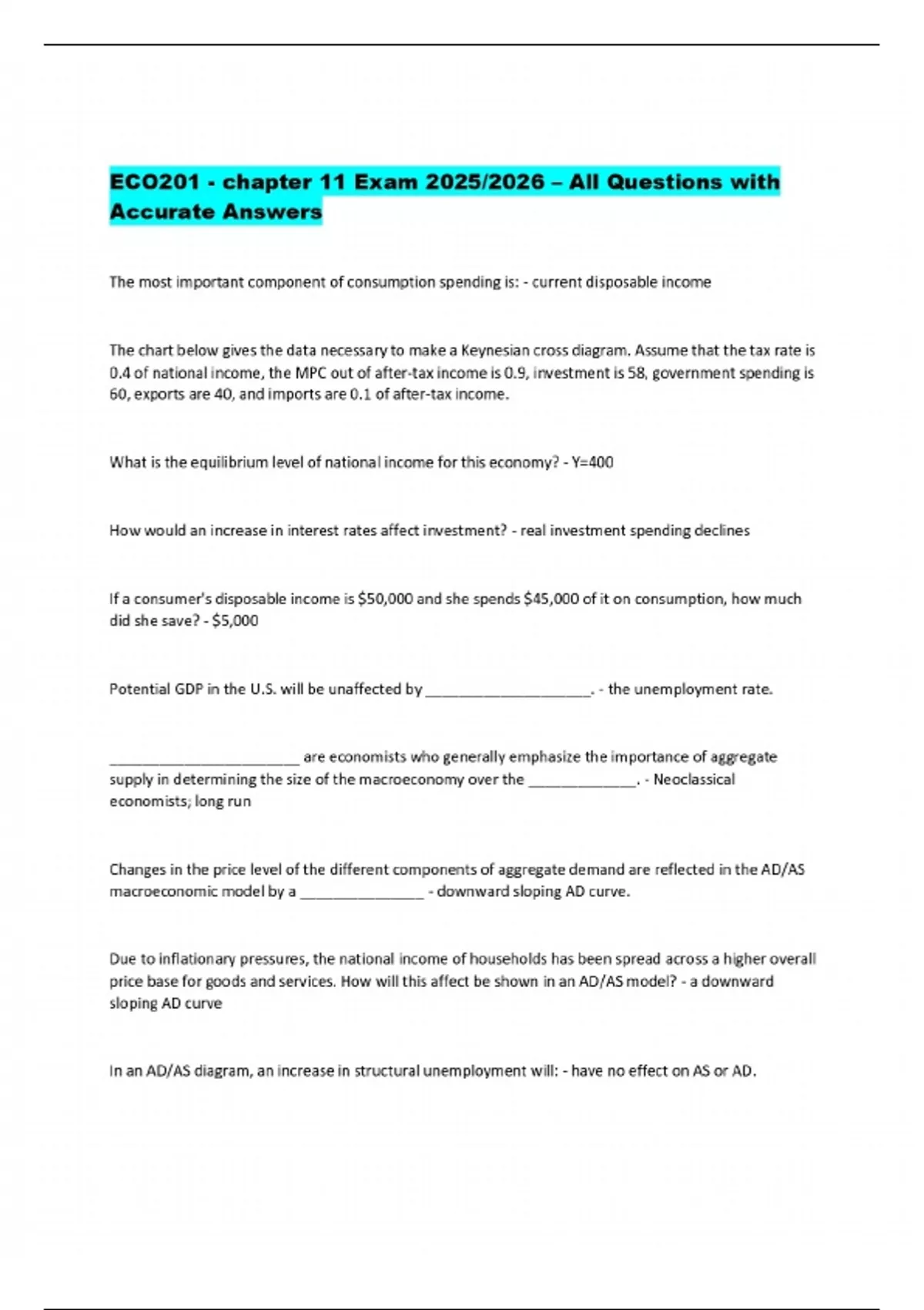 PACKAGE DEAL FOR ECO 201 Exams 2025/2026 – Verified Questions and Correct Answers