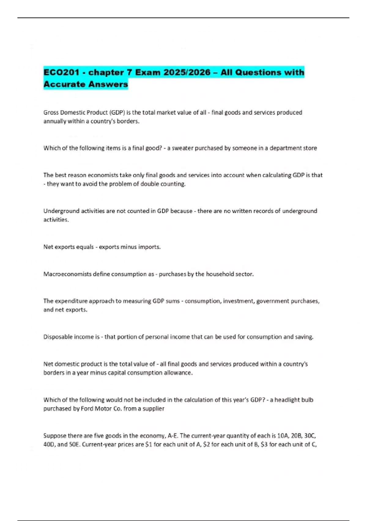 ECO201 - chapter 7 Exam 2025/2026 – All Questions with Accurate Answers