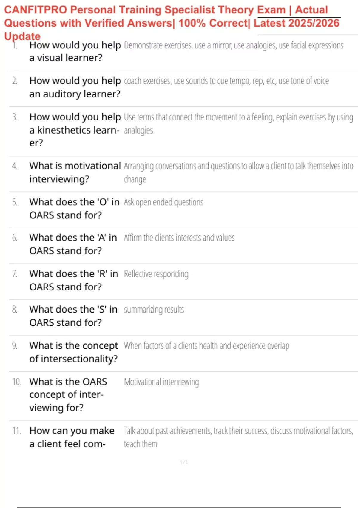 CANFITPRO Personal Training Specialist Theory Exam | Actual Questions with Verified Answers| 100% Correct| Latest 2025/2026 Update
