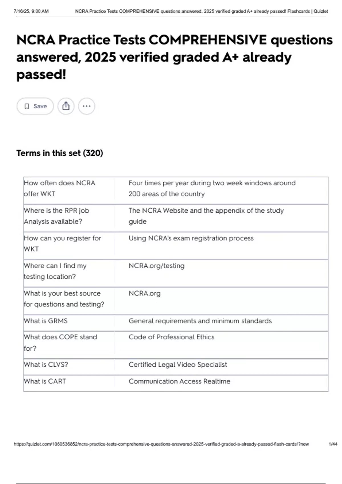 , 7/16/25, 9:00 AM NCRA Practice Tests COMPREHENSIVE questions answered, 2025 verified graded A+ already passed! Flashcards | Quizlet